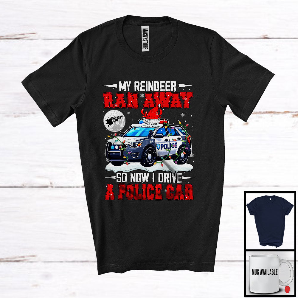 My Reindeer Ran Away Now I Drive A Police Car; Humorous Christmas Santa Driver; Family T-Shirt