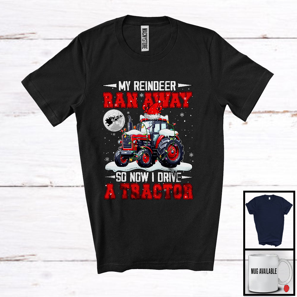 My Reindeer Ran Away Now I Drive A Tractor; Humorous Christmas Santa Driver; Family T-Shirt
