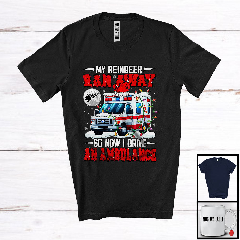 My Reindeer Ran Away Now I Drive An Ambulance; Humorous Christmas Santa Driver; Family T-Shirt