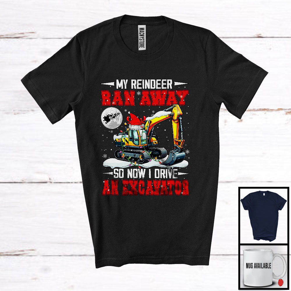 My Reindeer Ran Away Now I Drive An Excavator; Humorous Christmas Santa Driver; Family T-Shirt
