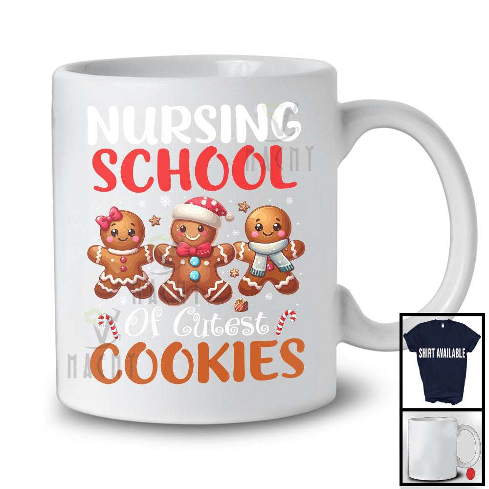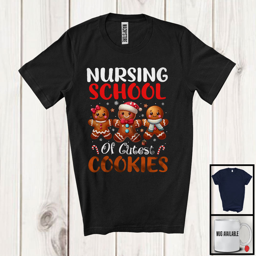 • Nursing school Of Cutest Cookies; Adorable Christmas Three Gingerbread; X-mas Group T-Shirt. This cotton t-shirt is a durable staple product with a classic fit. One of the most popular items, it has a relaxed style made for everyday and casual wear.