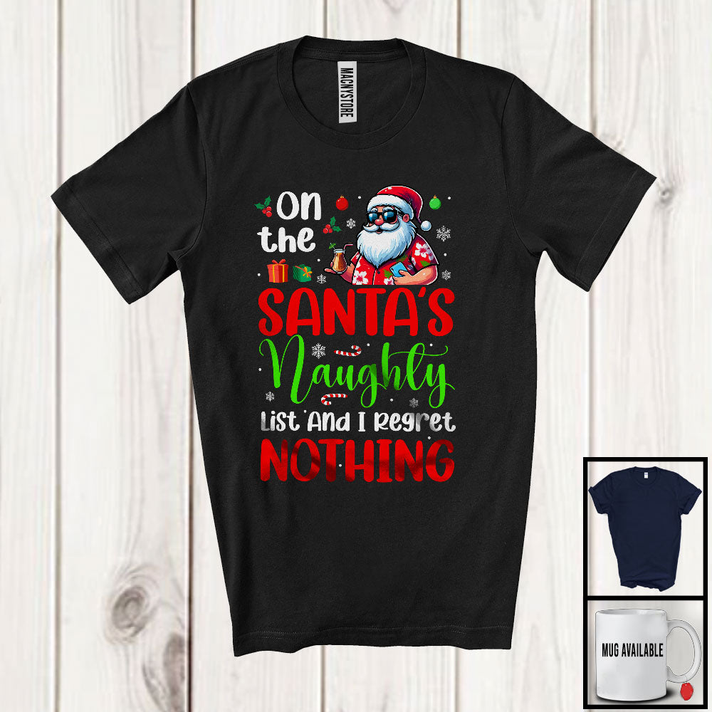 On The Santa's Naughty List I Regret Nothing; Humorous Christmas Hawaiian Santa; Family X-mas T-Shirt