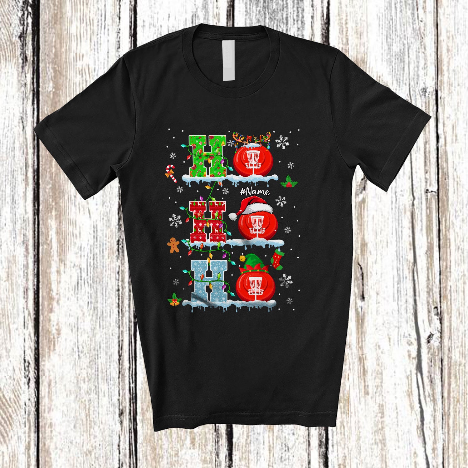 • Personalized 3Ho Disc Golf; Joyful Christmas Santa Disc Golf Custom Name Player; Snow Family T-Shirt. This cotton t-shirt is a durable staple product with a classic fit. One of the most popular items, it has a relaxed style made for everyday and casual wear.