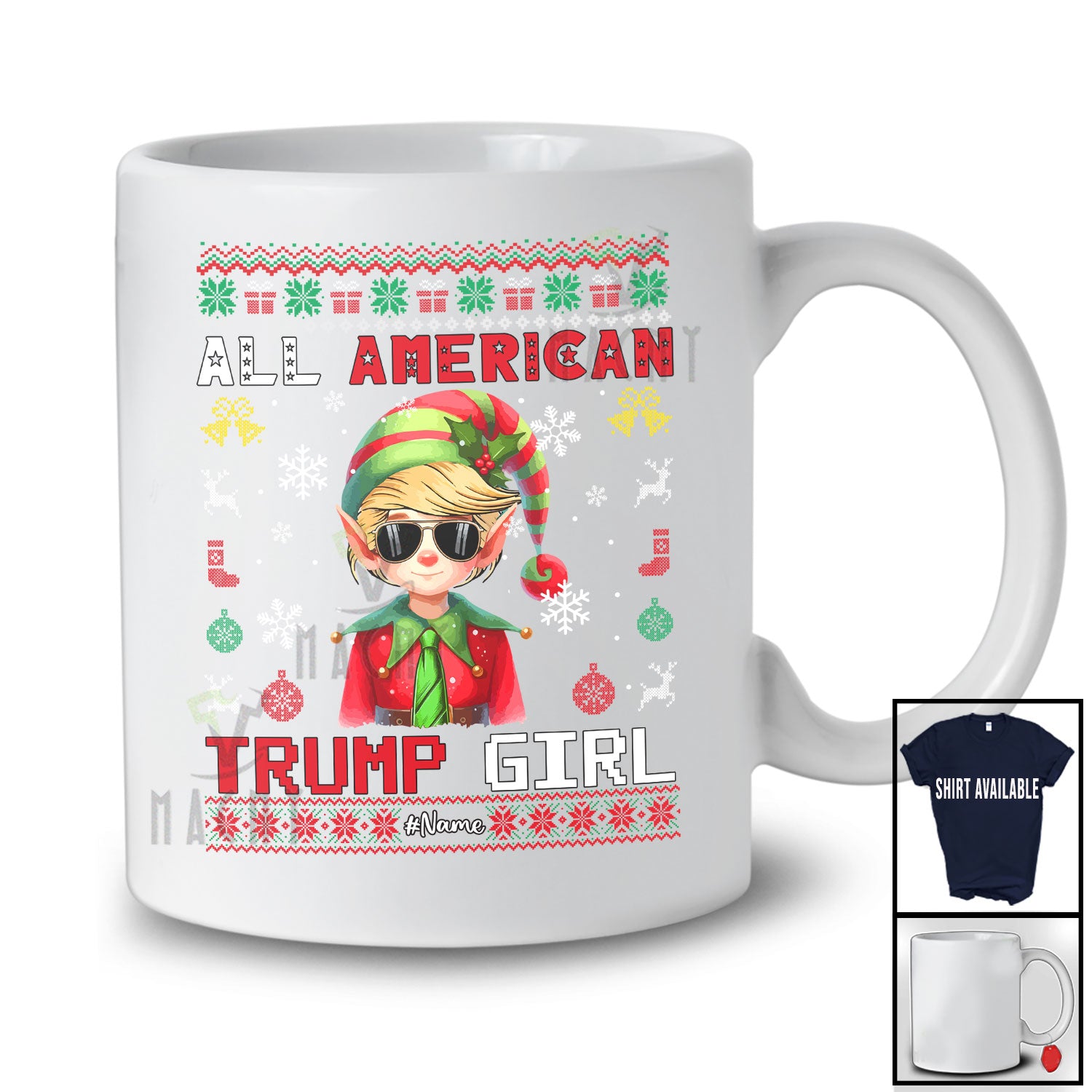 This Personalized All American Trump Girl; Merry Christmas Custom Name Elf Trump Back 2024; Sweater T-Shirt is great idea gift for your family, friends in this birthday, christmas, mother's day, father's day, patrick's day or any holiday.