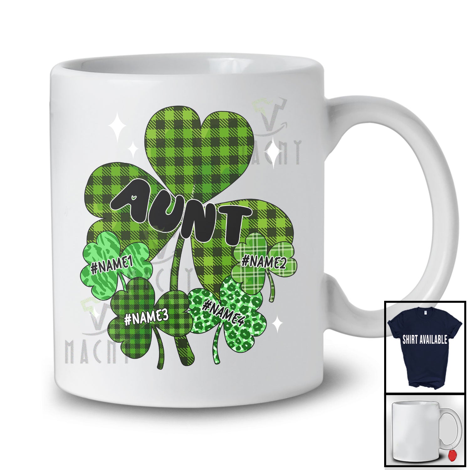 new MacnyStore - Personalized Aunt; Fantastic St. Patrick's Day Leopard Plaid Shamrocks; Custom Name Family T-Shirt – Macnystore