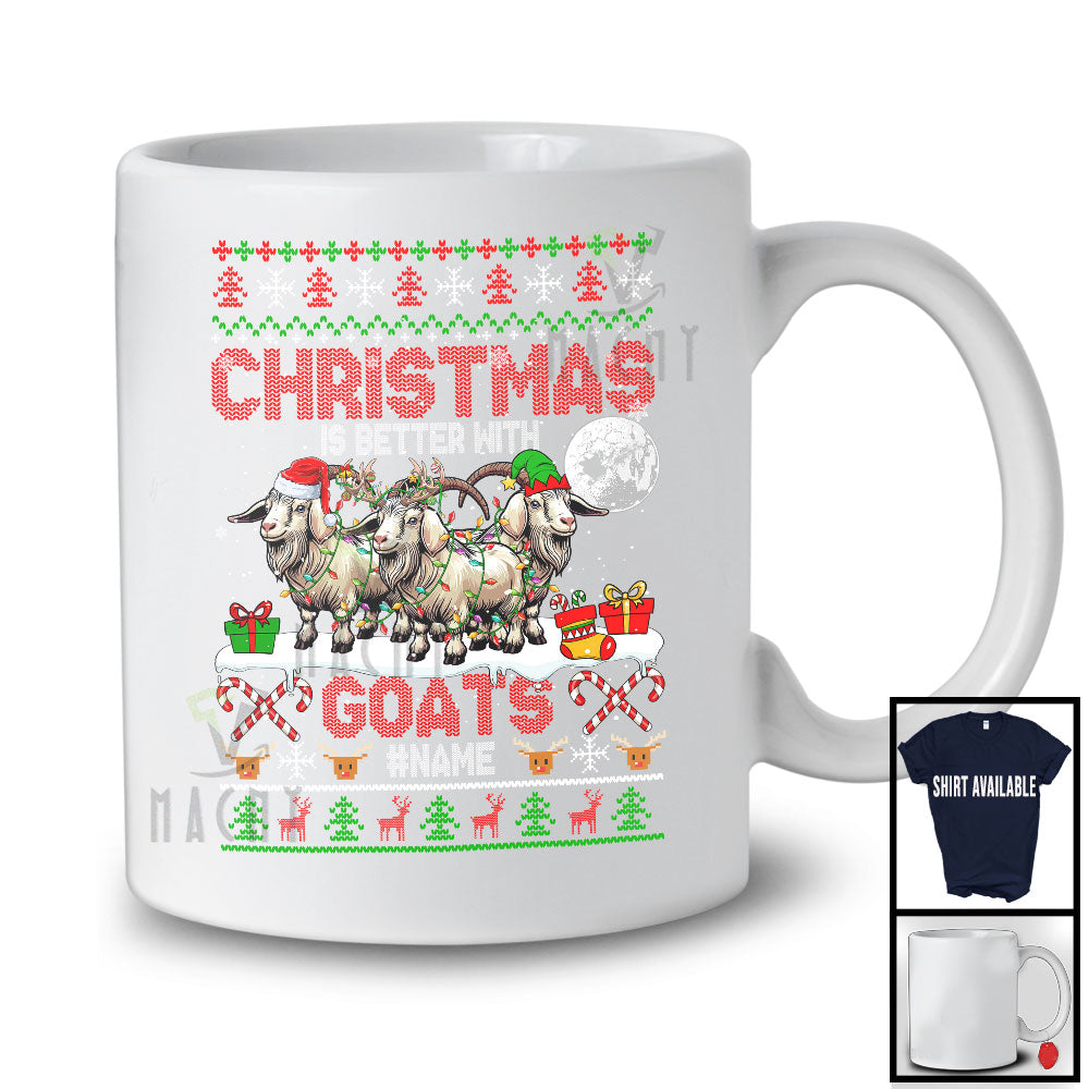 This Personalized Christmas Is Better With Goats; Fantastic X-mas Sweater Custom Name; Animal T-Shirt is great idea gift for your family, friends in this birthday, christmas, mother's day, father's day, patrick's day or any holiday.