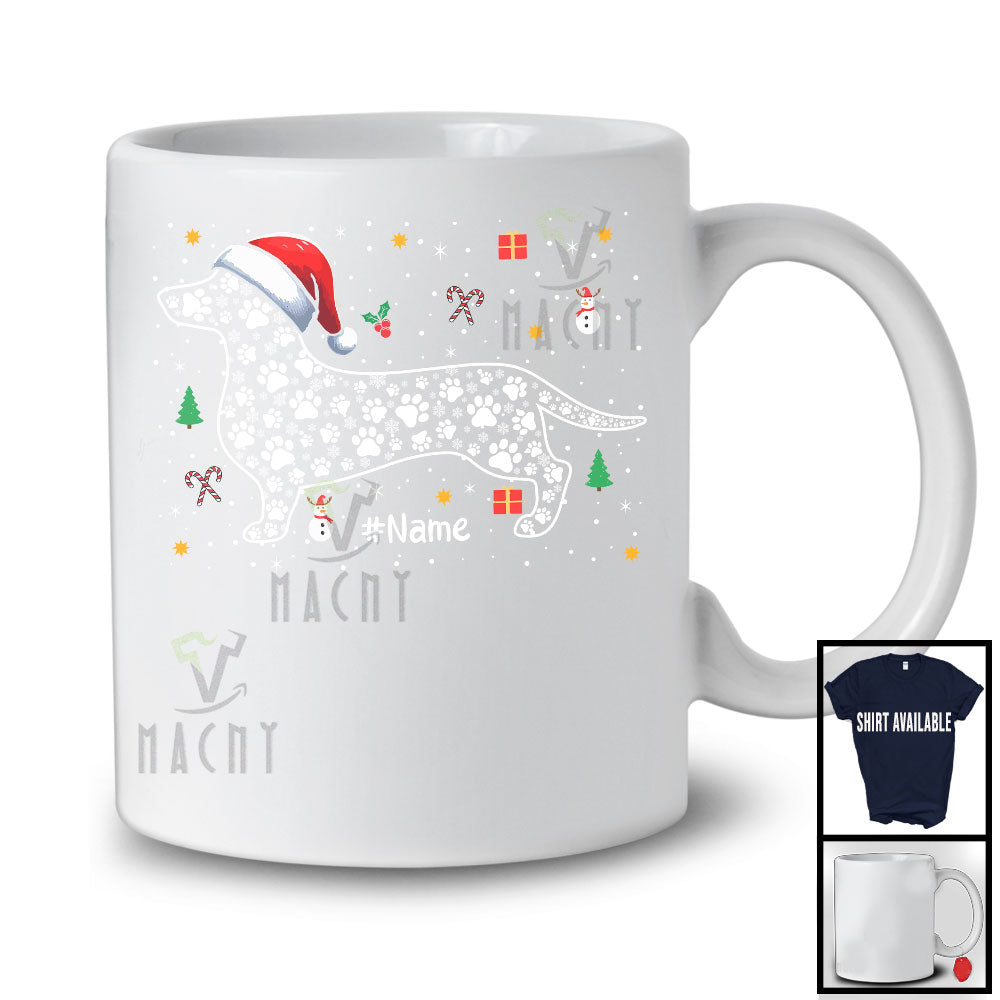 Personalized Christmas Santa Dachshund Paws Shape; Cheerful X-mas Custom Name Dachshund; Family T-Shirt