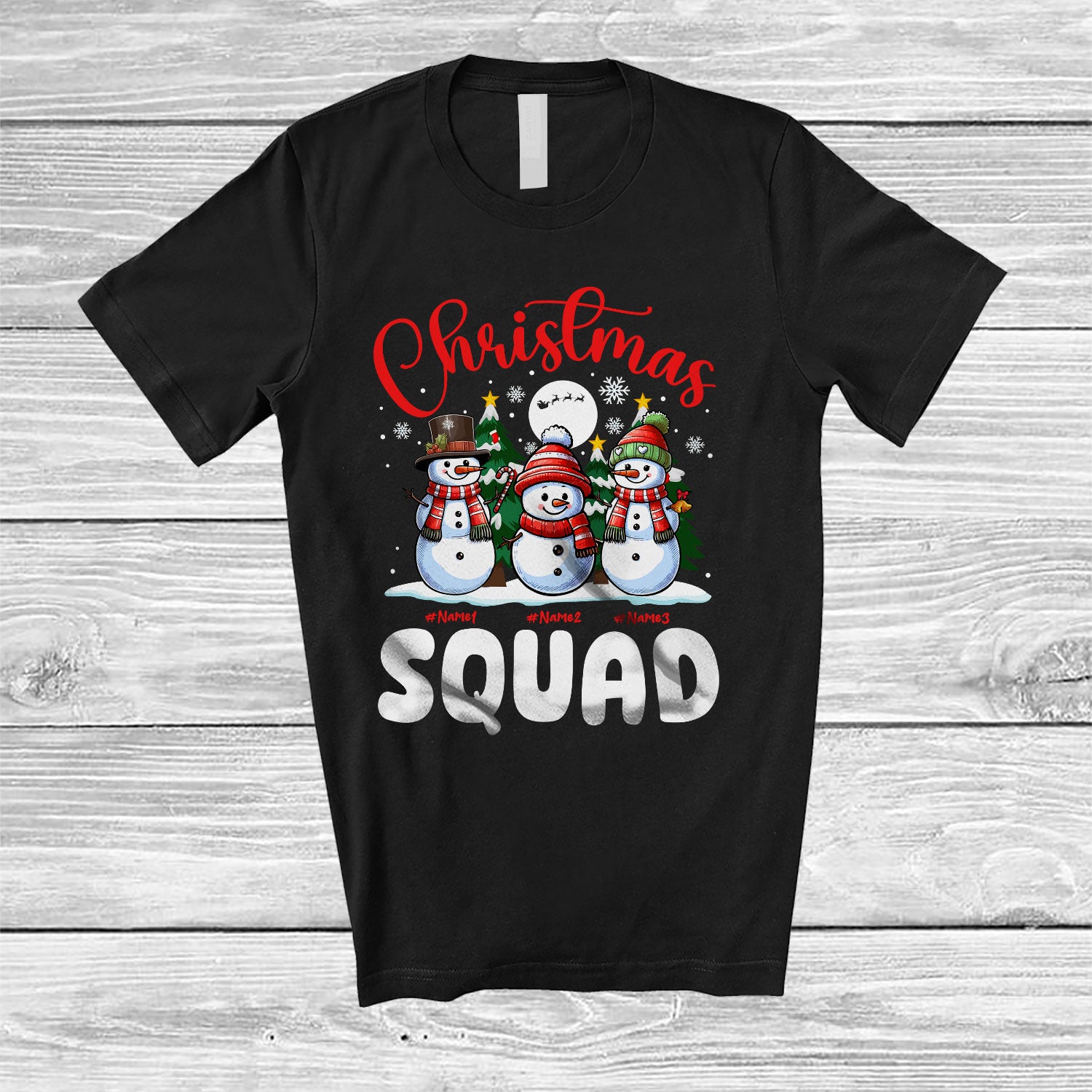 Personalized Christmas Squad; Awesome X-mas Custom Name Three Snowman; Family T-Shirt