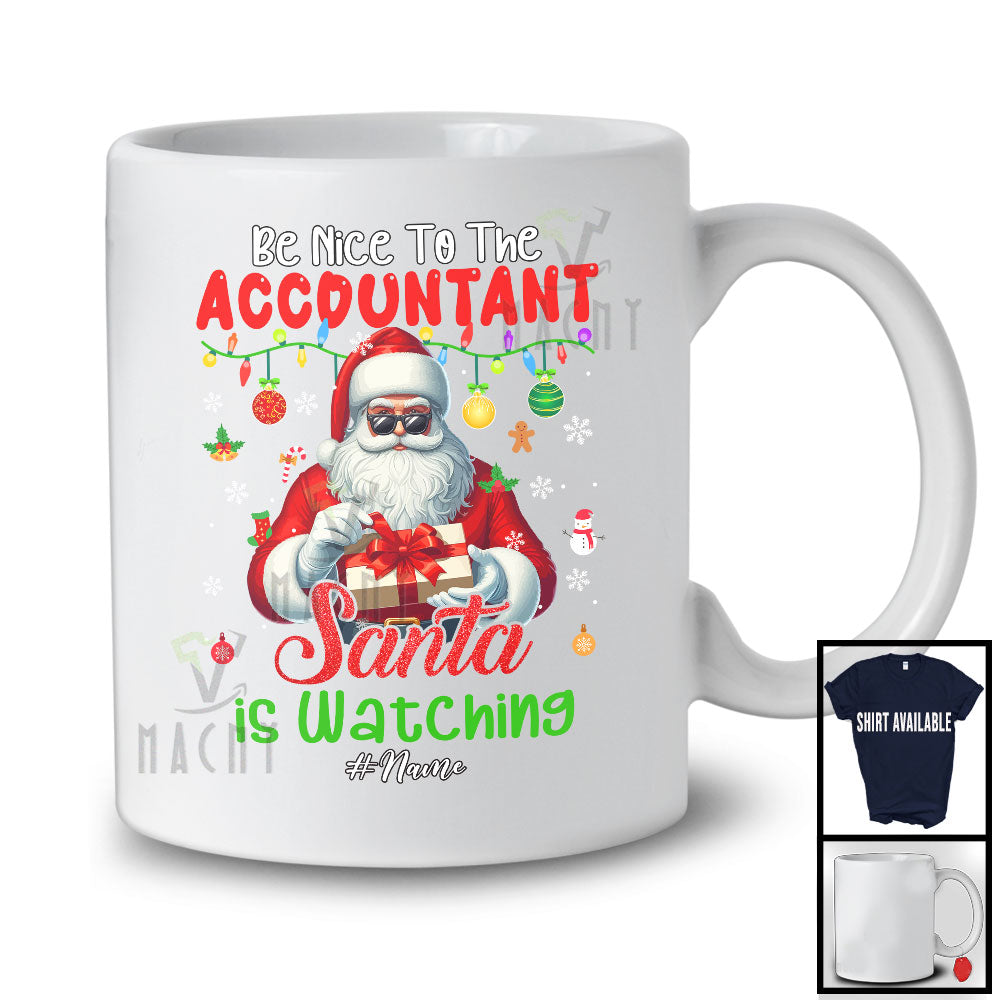 • Personalized Custom Name Be Nice To The Accountant; Merry Christmas Santa; Women Jobs Proud T-Shirt. This cotton t-shirt is a durable staple product with a classic fit. One of the most popular items, it has a relaxed style made for everyday and casual wear.