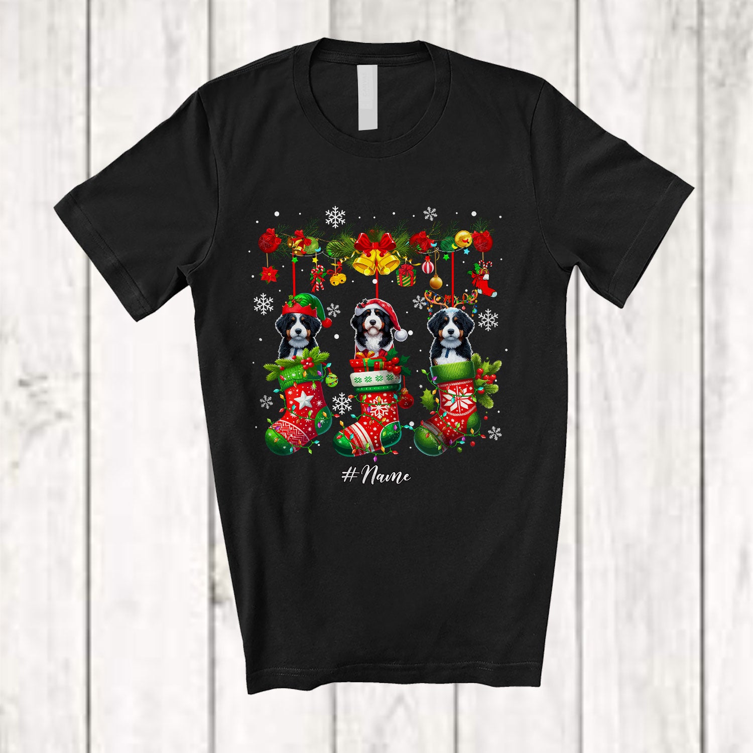 The Personalized Custom Name Bernedoodles Dog In Three Christmas Socks; Lovely X-mas Lights Snow T-Shirt is the product you didn't think you need, but once you have it, something you won't want to live without.