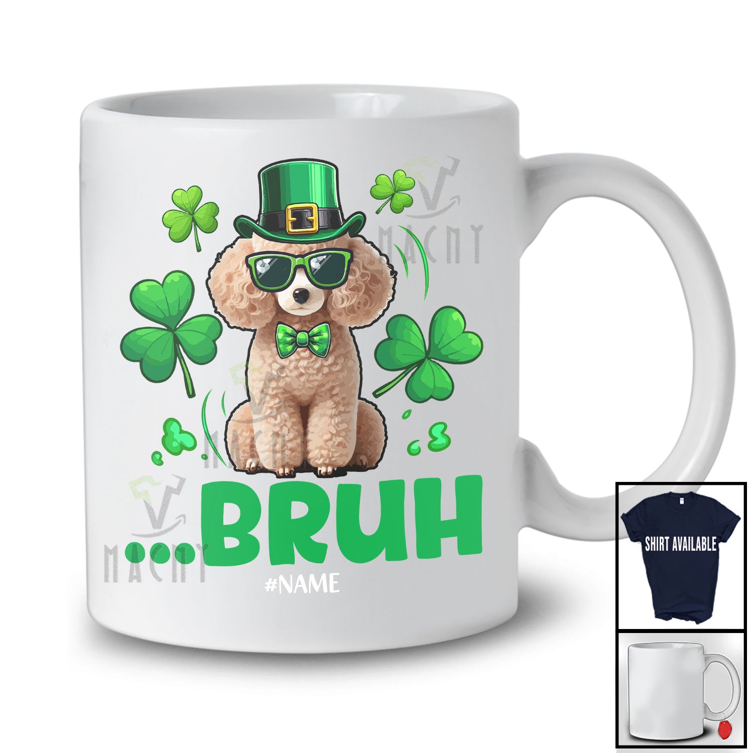 Personalized Custom Name Bruh Poodle; Joyful St. Patrick's Day Poodle Leprechaun Shamrocks T-Shirt. This cotton t-shirt is a durable staple product with a classic fit. One of the most popular items, it has a relaxed style made for everyday and casual wear.
