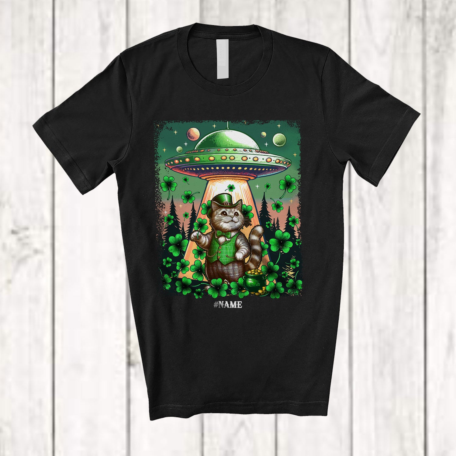 Personalized Custom Name Cat Leprechaun UFO; Joyful St. Patrick's Day Stolen Cat Shamrock T-Shirt