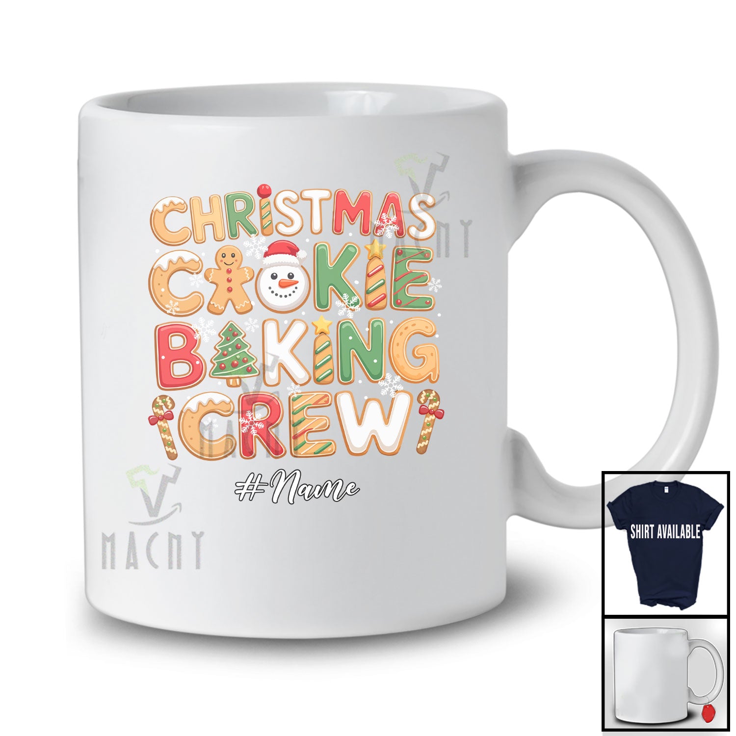 Personalized Custom Name Christmas Cookies Baking Crew; Adorable Snowman Gingerbread Baker T-Shirt. This cotton t-shirt is a durable staple product with a classic fit. One of the most popular items, it has a relaxed style made for everyday and casual wear.