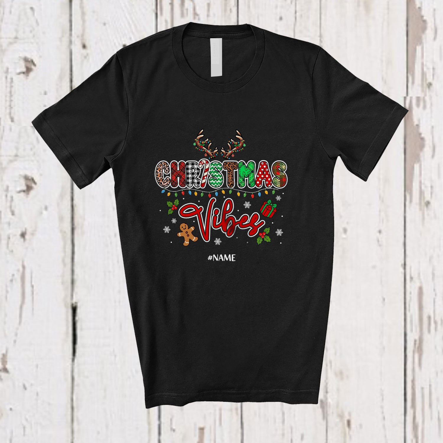 This Personalized Custom Name Christmas Vibes; Lovely Lights Reindeer Gingerbread Leopard Plaid T-Shirt is great idea gift for your family, friends in this birthday, christmas, mother's day, father's day, patrick's day or any holiday.