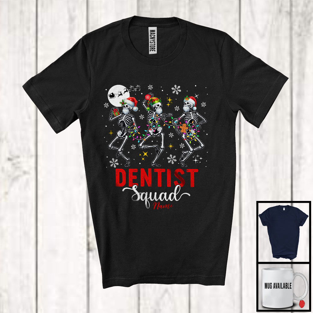 Personalized Custom Name Dentist Squad; Joyful Christmas Three Dancing Skeletons; Dancer T-Shirt
