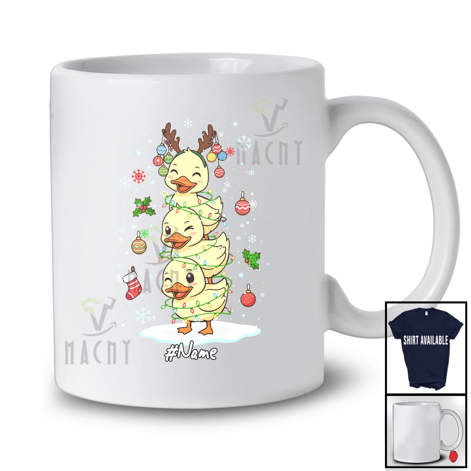 new MacnyStore - Personalized Custom Name Duck Reindeer Christmas Tree; Lovely X-mas Lights Farm Farmer T-Shirt – Macnystore