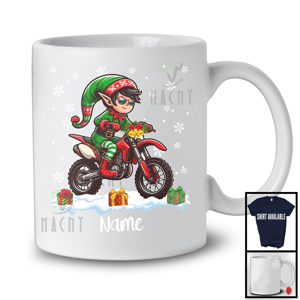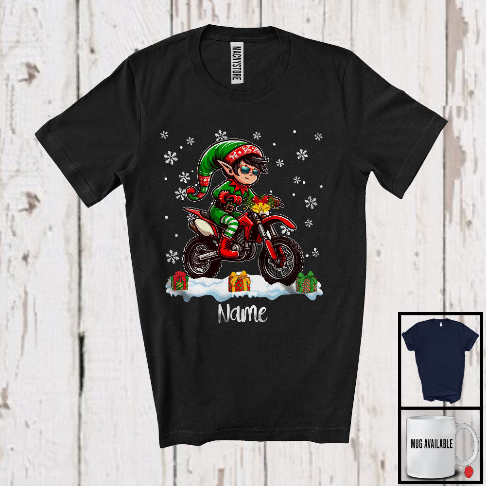Personalized Custom Name Elf Riding Dirt Bike, Adorable Christmas ELF Rider, X-mas Team T-Shirt