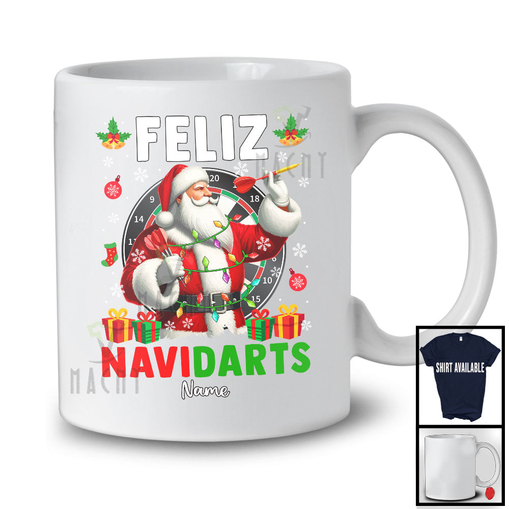 Personalized Custom Name Feliz Navidarts; Amazing Christmas Santa Playing Darts; Spanish Family T-Shirt