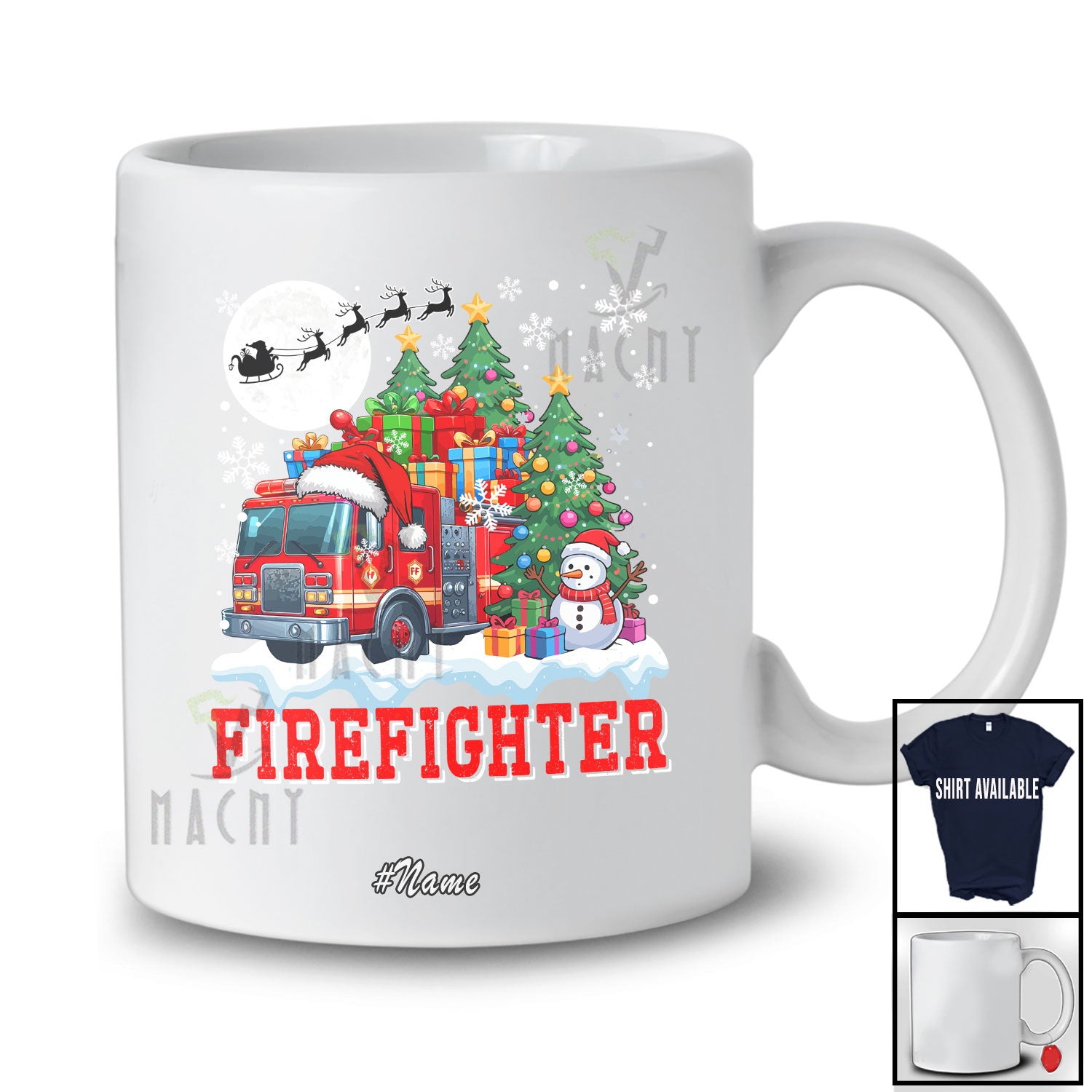 new MacnyStore - Personalized Custom Name Firefighter With Christmas Tree Snowman; Awesome X-mas Jobs Proud T-Shirt – Macnystore