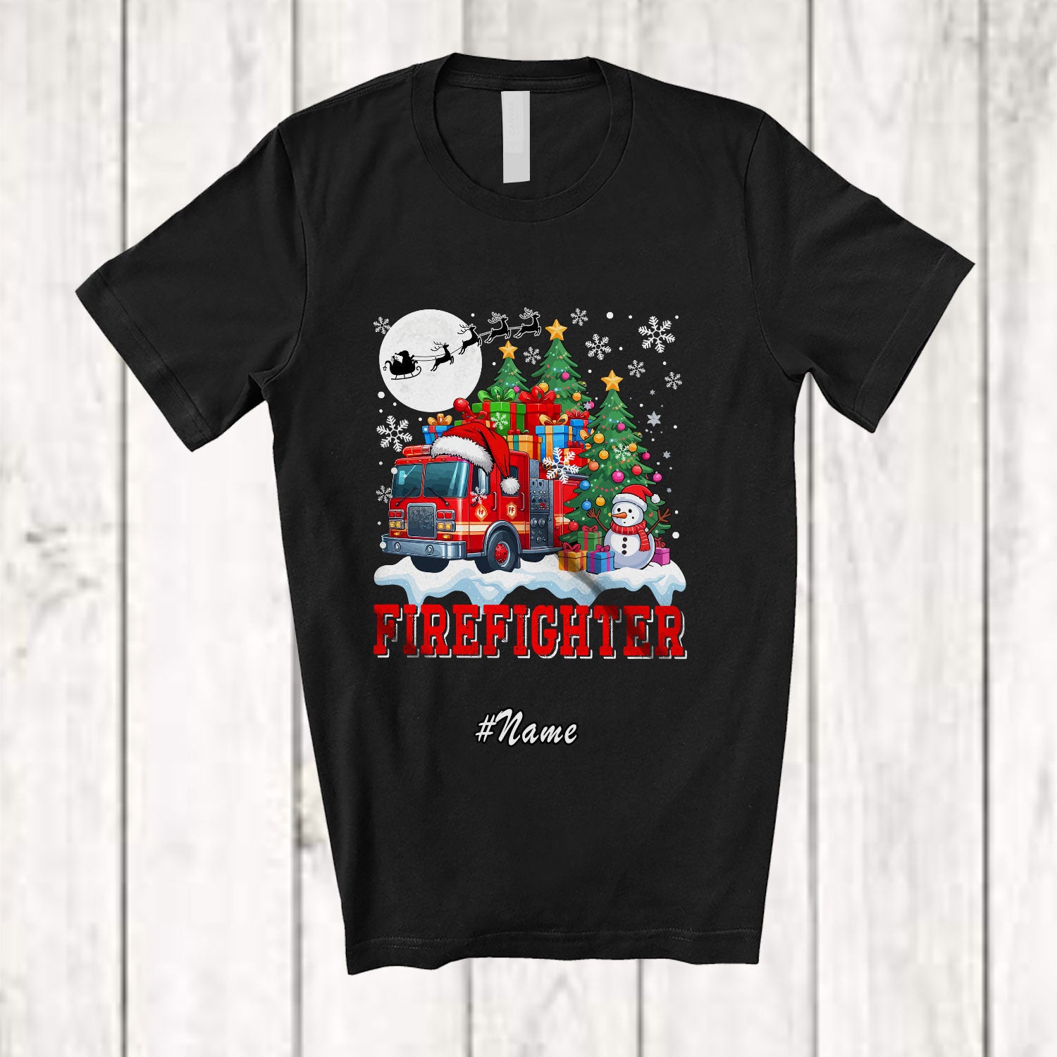 • Personalized Custom Name Firefighter With Christmas Tree Snowman; Awesome X-mas Jobs Proud T-Shirt. This cotton t-shirt is a durable staple product with a classic fit. One of the most popular items, it has a relaxed style made for everyday and casual wear.