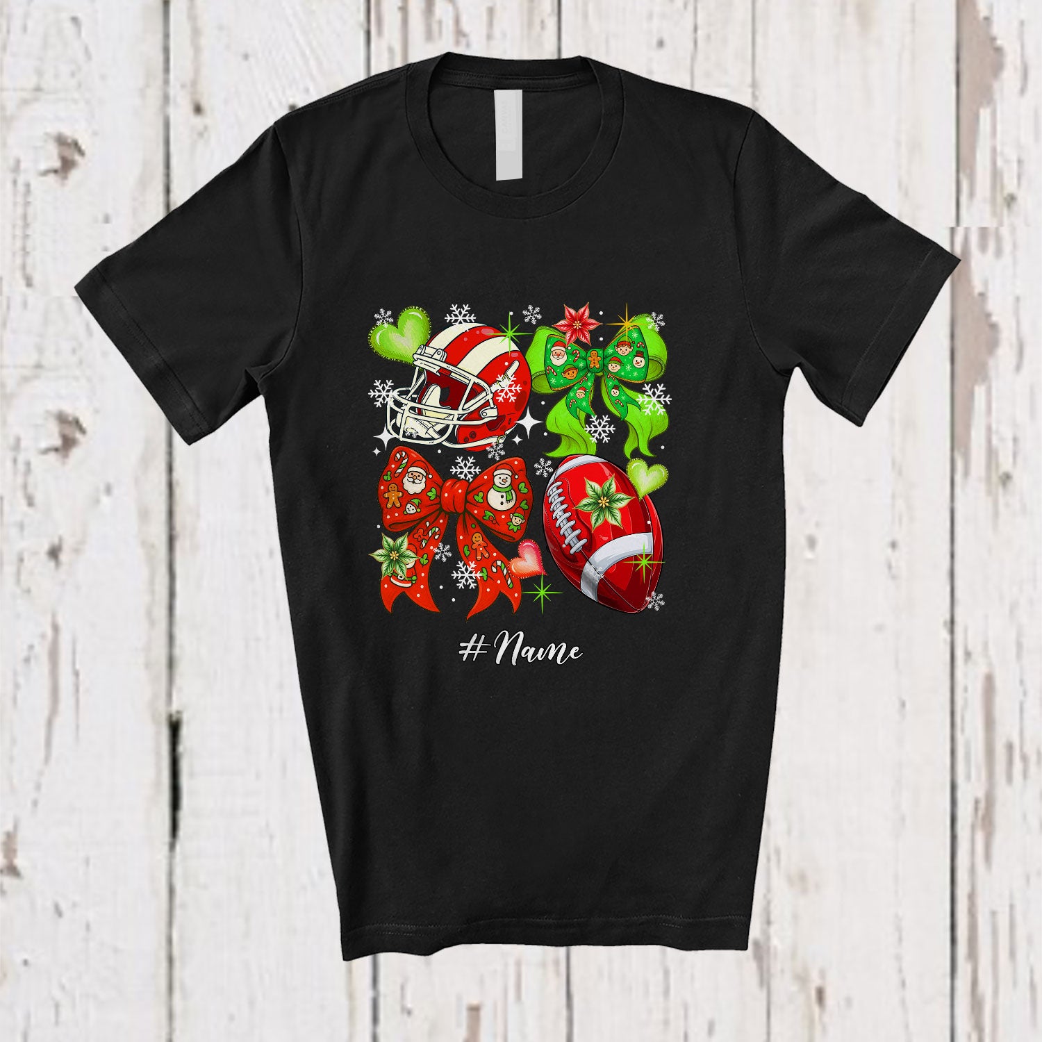 The Personalized Custom Name Football Christmas Coquette; Lovely Bow Tie Snowing; Sport Player T-Shirt is the yin, to your yang. You've found what you're looking for.