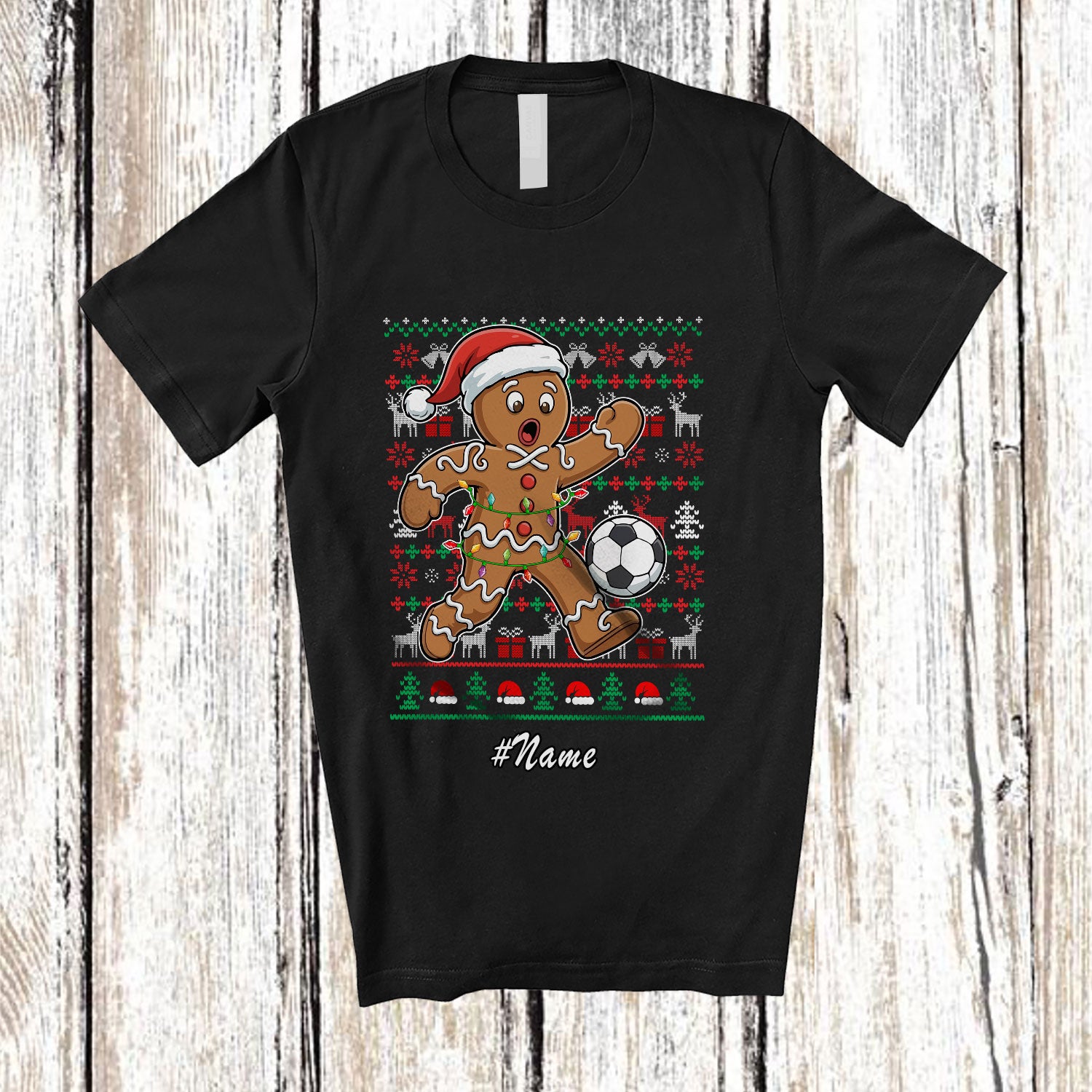 Personalized Custom Name Gingerbread Playing Soccer; Humorous Christmas Sweater Player T-Shirt