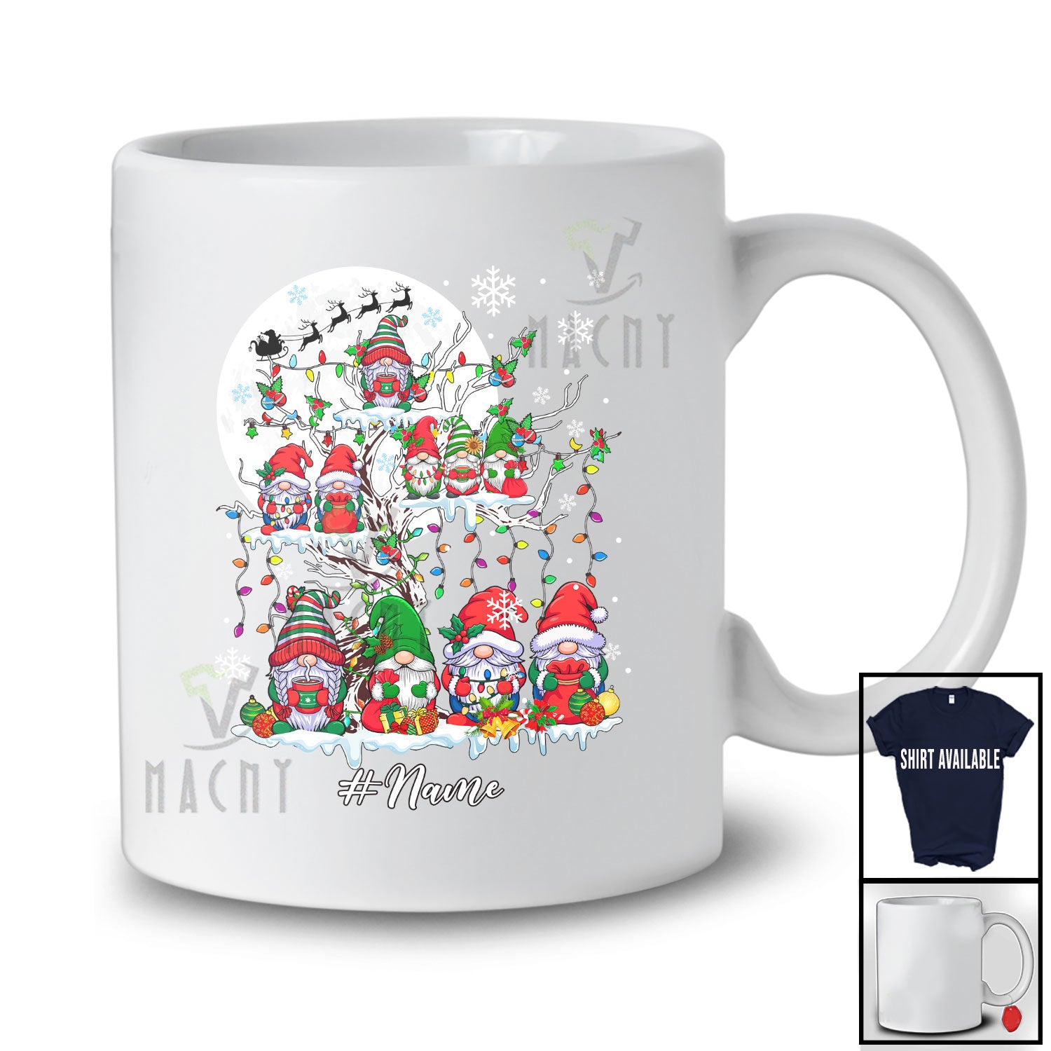 The Personalized Custom Name Gnomes On Christmas Tree Snowing; Lovely Moon Gnomies Squad; Family T-Shirt destined to impress, and priced at only $12.95, for a limited time.