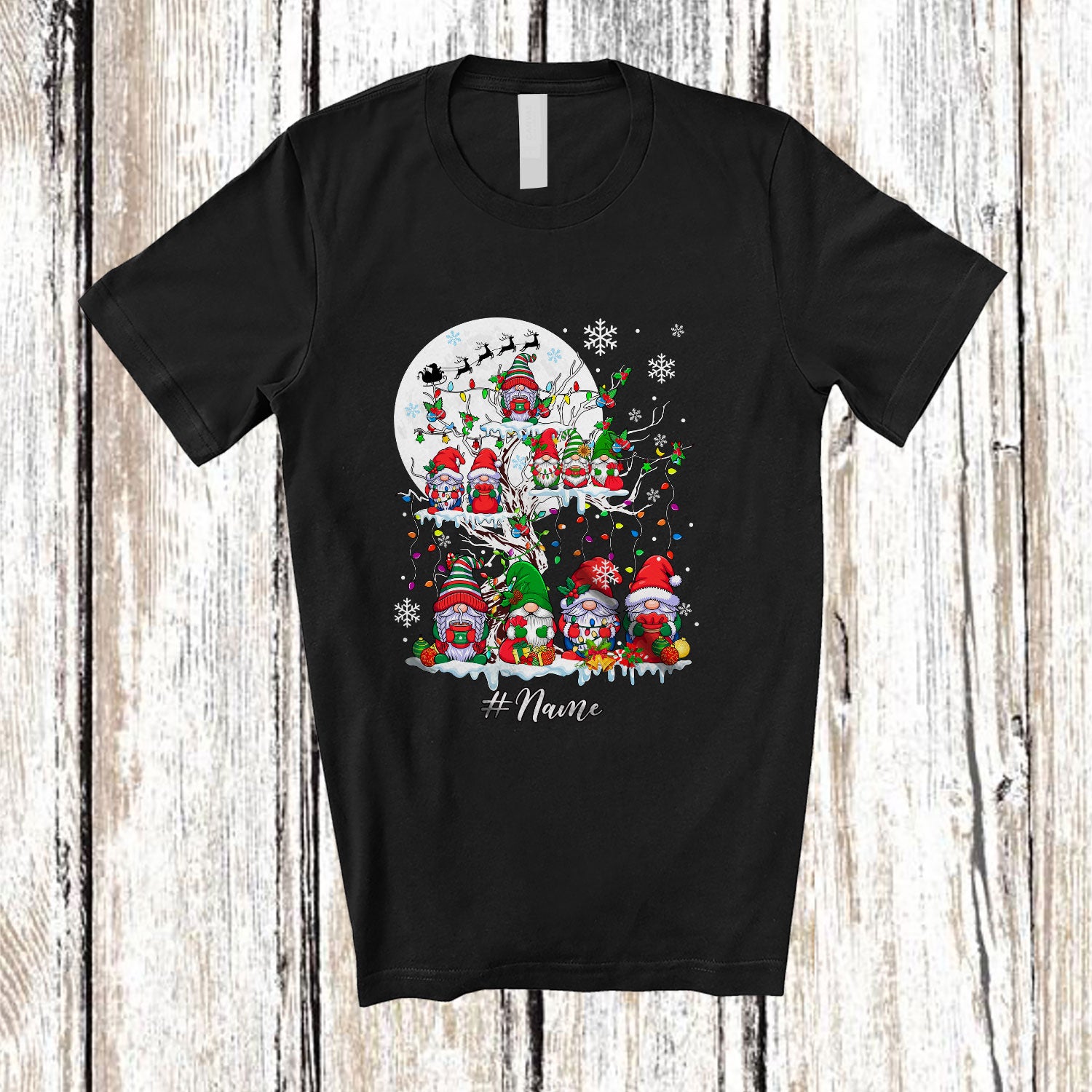 Personalized Custom Name Gnomes On Christmas Tree Snowing; Lovely Moon Gnomies Squad; Family T-Shirt