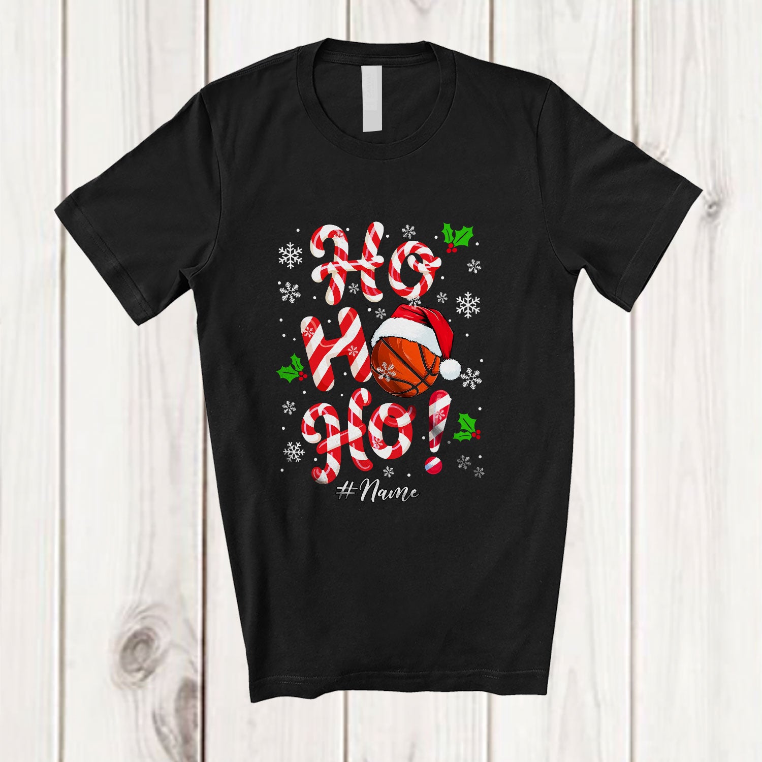 Personalized Custom Name Ho3; Amusing Christmas Candy Canes Basketball Player Team; Family T-Shirt