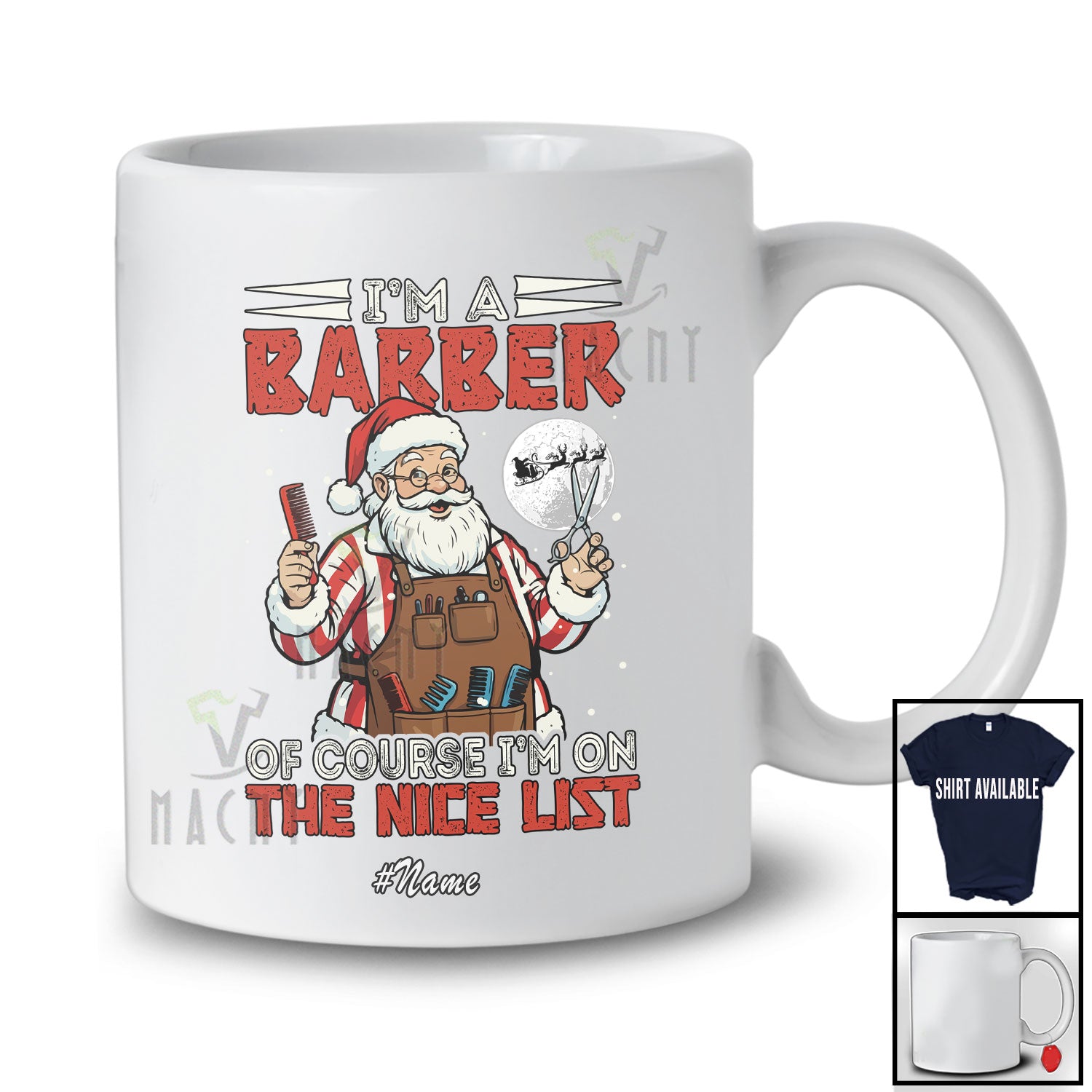 Personalized Custom Name I'm A Barber I'm On Nice List; Amazing Christmas Santa Jobs T-Shirt. This cotton t-shirt is a durable staple product with a classic fit. One of the most popular items, it has a relaxed style made for everyday and casual wear.