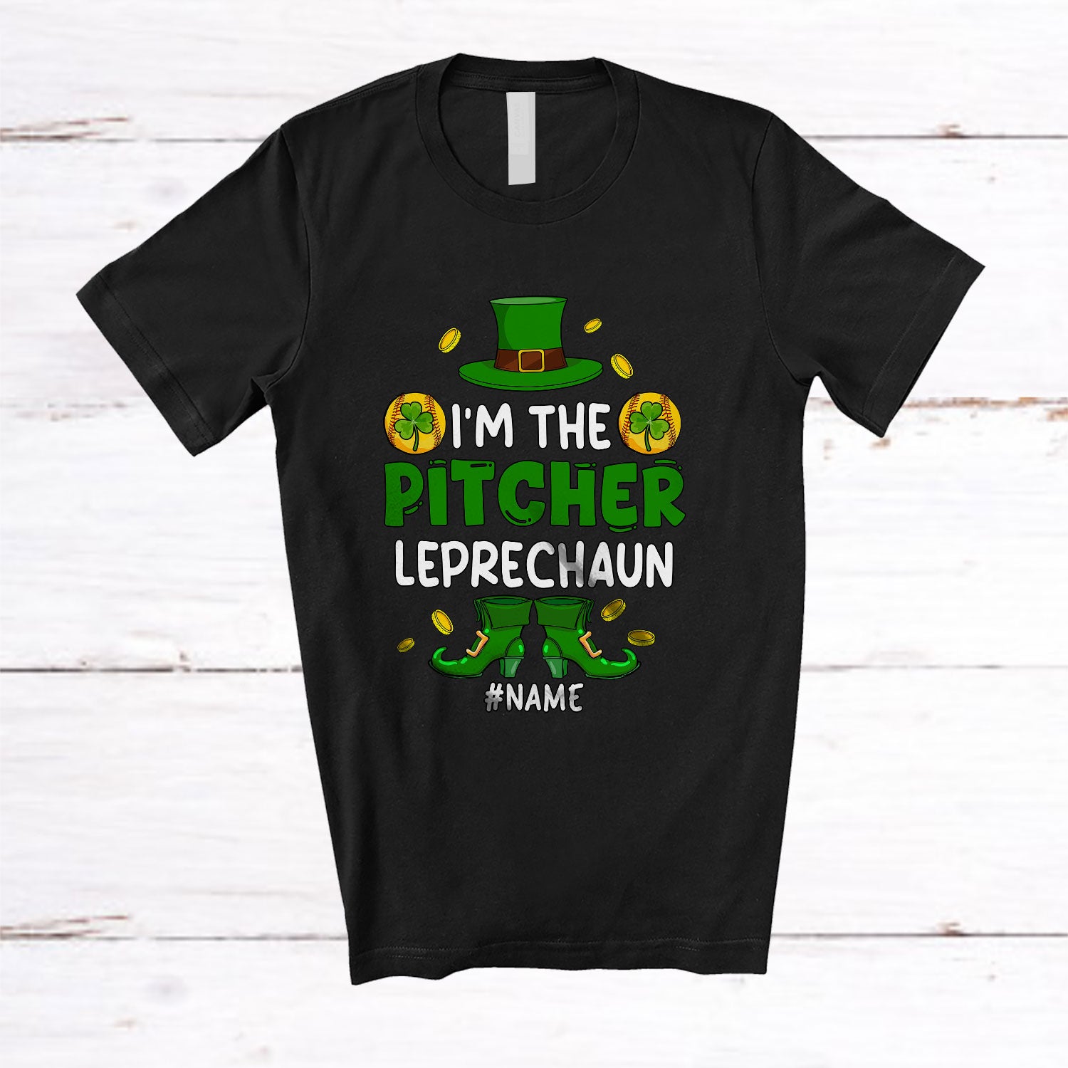 Personalized Custom Name I'm The Pitcher Leprechaun; Lovely St. Patrick's Day Softball Shamrocks T-Shirt