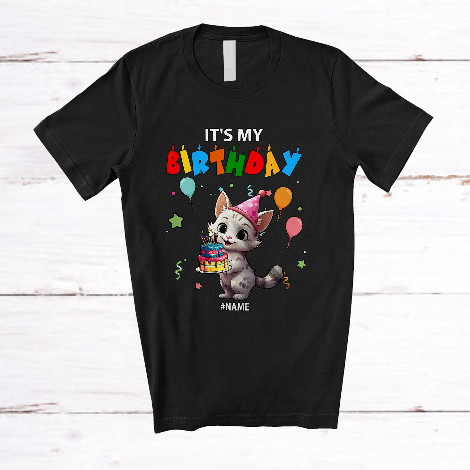 Personalized Custom Name It's My Birthday; Amusing Birthday Party Cat Owner; Family Group T-Shirt