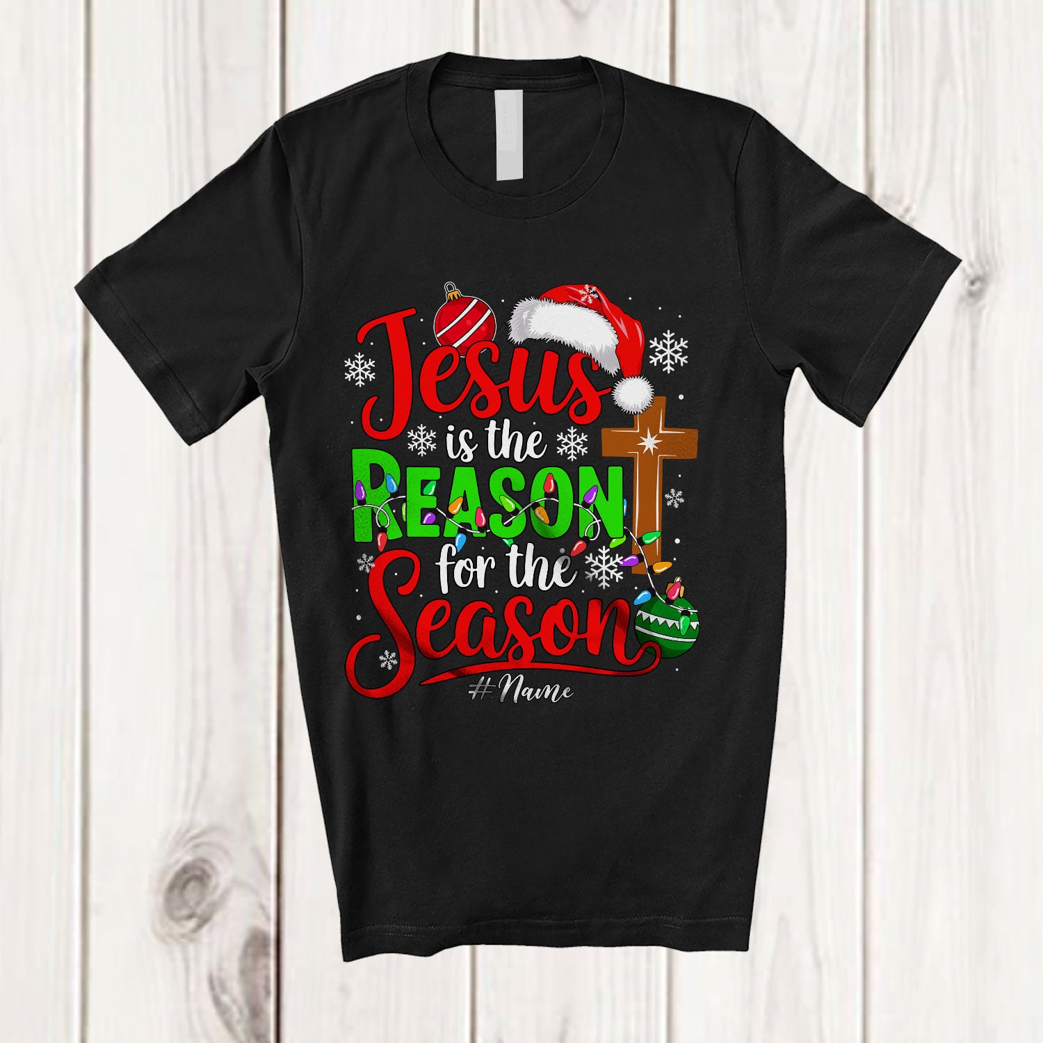 Personalized Custom Name Jesus Is The Reason For The Season; Amusing Christmas Santa Lights T-Shirt