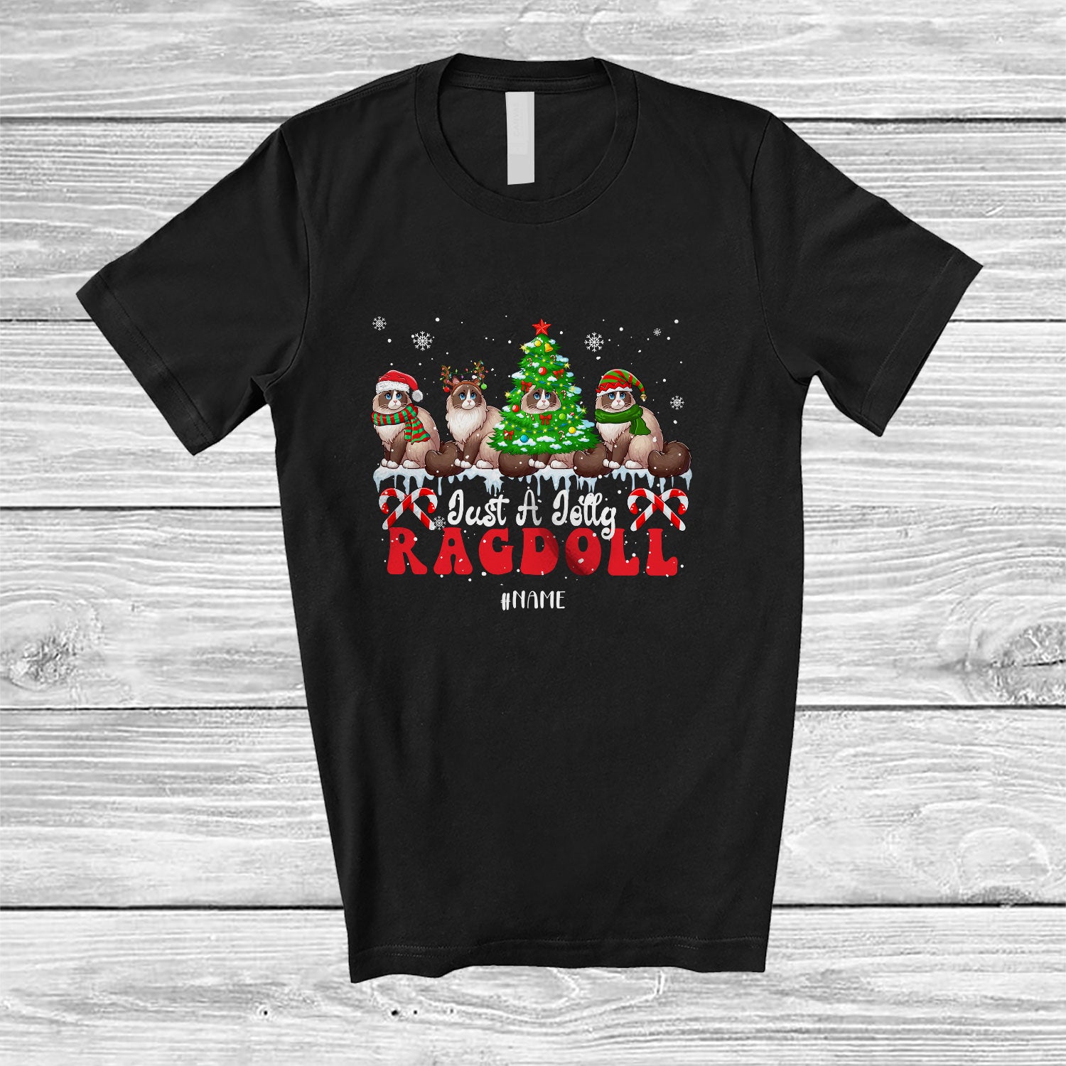 Personalized Custom Name Just A Jolly Ragdoll; Adorable Christmas Tree Santa Elf Animal T-Shirt