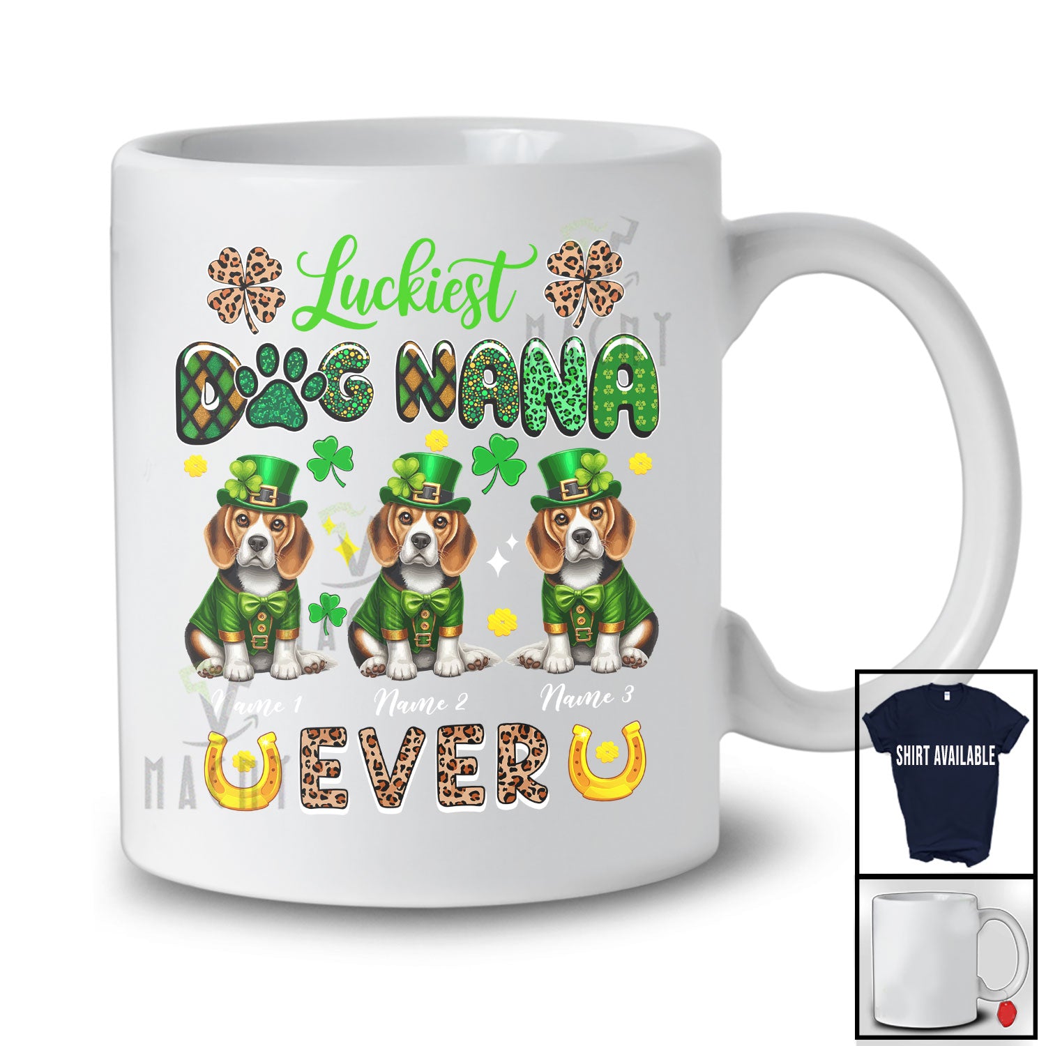 This Personalized Custom Name Luckiest Dog Nana Ever; Lovely St. Patrick's Day Three Beagle Owner T-Shirt is great idea gift for your family, friends in this birthday, christmas, mother's day, father's day, patrick's day or any holiday.