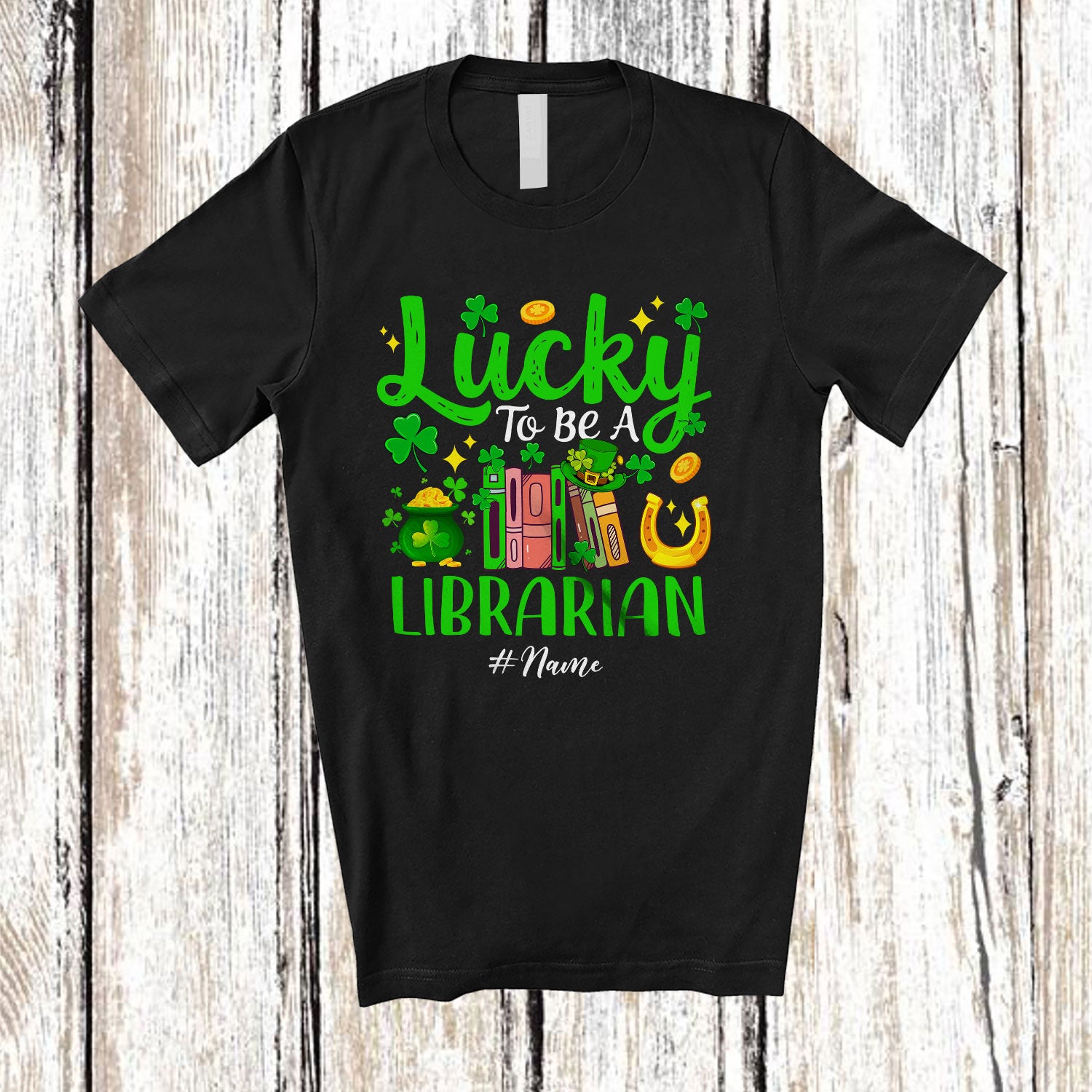 Personalized Custom Name Lucky To Be A Librarian; Awesome St. Patrick's Day Shamrocks T-Shirt