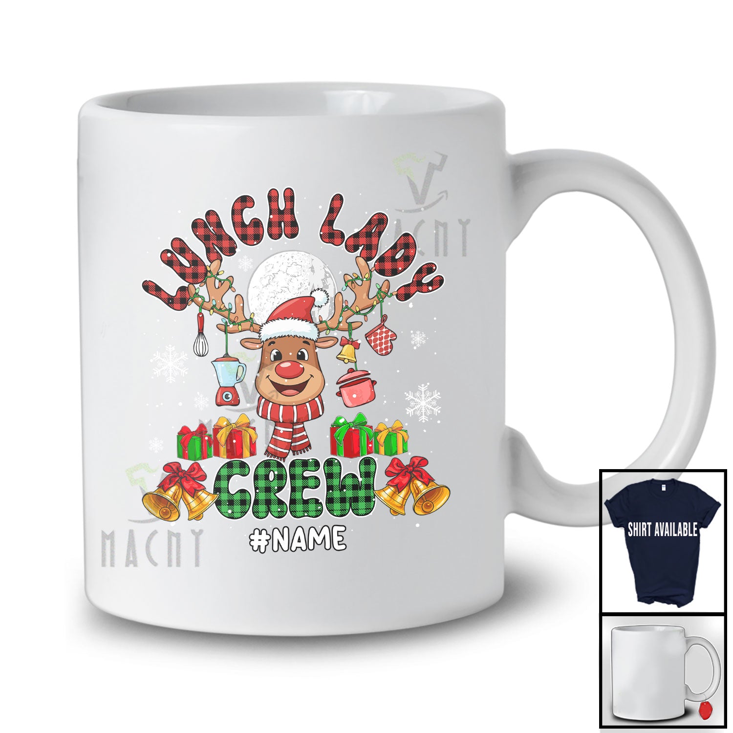Personalized Custom Name Lunch Lady Crew; Amazing Christmas Plaid Reindeer Face T-Shirt. This cotton t-shirt is a durable staple product with a classic fit. One of the most popular items, it has a relaxed style made for everyday and casual wear.