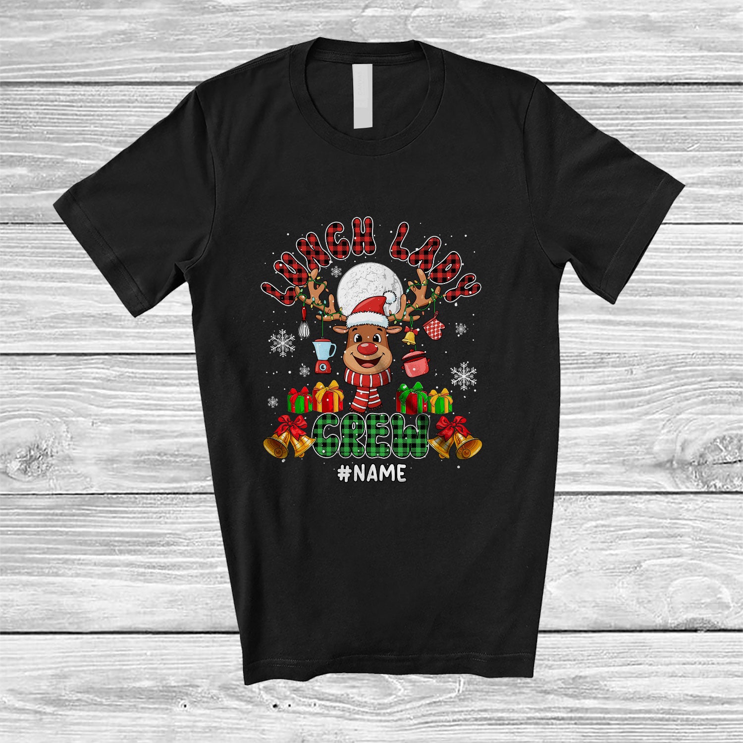 Personalized Custom Name Lunch Lady Crew; Amazing Christmas Plaid Reindeer Face T-Shirt