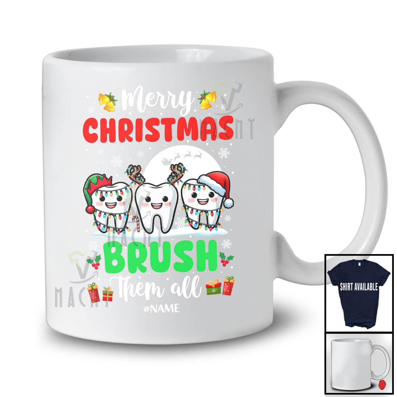 This Personalized Custom Name Merry Christmas Brush Them All; Lovely Three Teeth Dental Dentist T-Shirt is great idea gift for your family, friends in this birthday, christmas, mother's day, father's day, patrick's day or any holiday.
