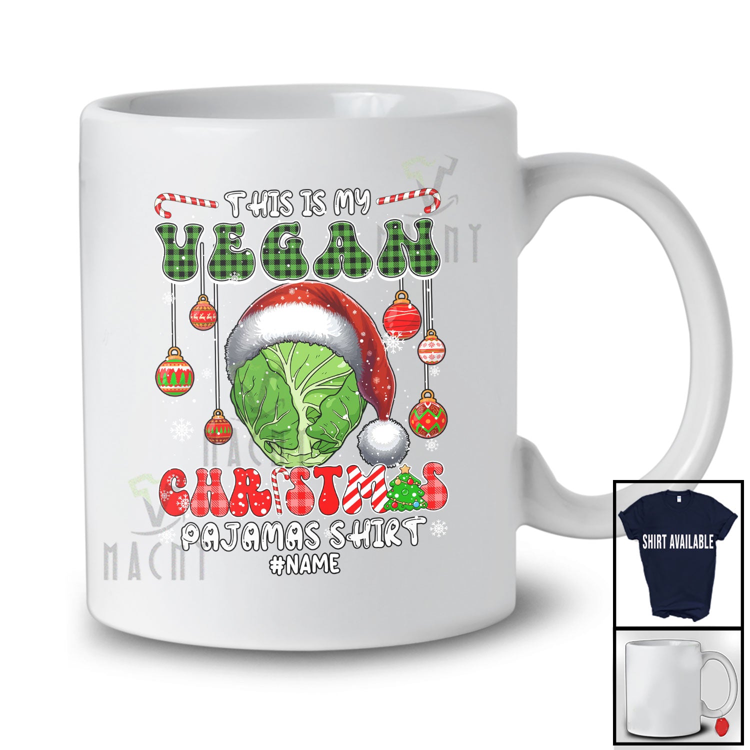 Personalized Custom Name My Vegan Christmas Pajamas; Joyful Plaid Santa Brussel Sprouts Vegan T-Shirt. This cotton t-shirt is a durable staple product with a classic fit. One of the most popular items, it has a relaxed style made for everyday and casual wear.