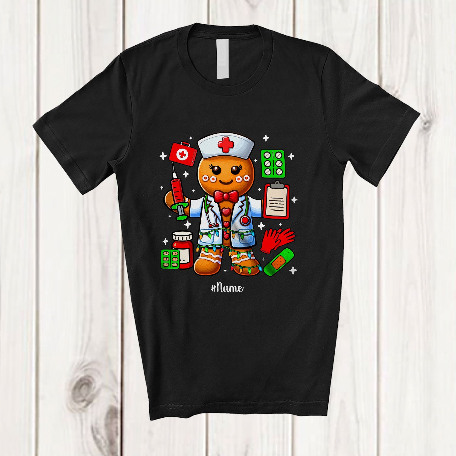 Personalized Custom Name Nurse Gingerbread; Amusing Christmas Lights Baking Baker T-Shirt