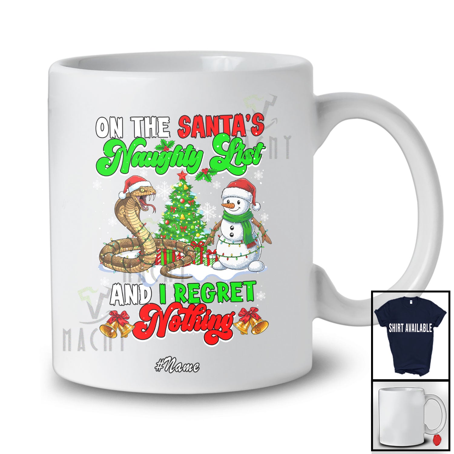 Personalized Custom Name On The Santa's Naughty List; Adorable Christmas Cobra Snowman T-Shirt. This cotton t-shirt is a durable staple product with a classic fit. One of the most popular items, it has a relaxed style made for everyday and casual wear.