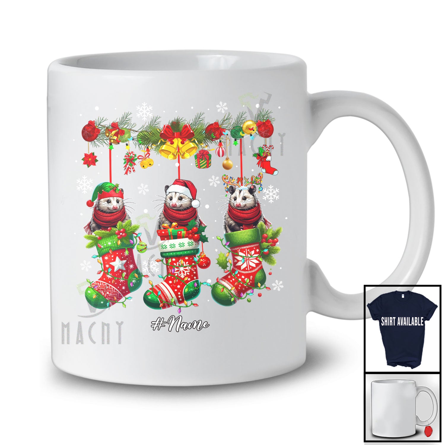 This Personalized Custom Name Opossum In Three Christmas Socks; Lovely X-mas Lights Snow T-Shirt is great idea gift for your family, friends in this birthday, christmas, mother's day, father's day, patrick's day or any holiday.