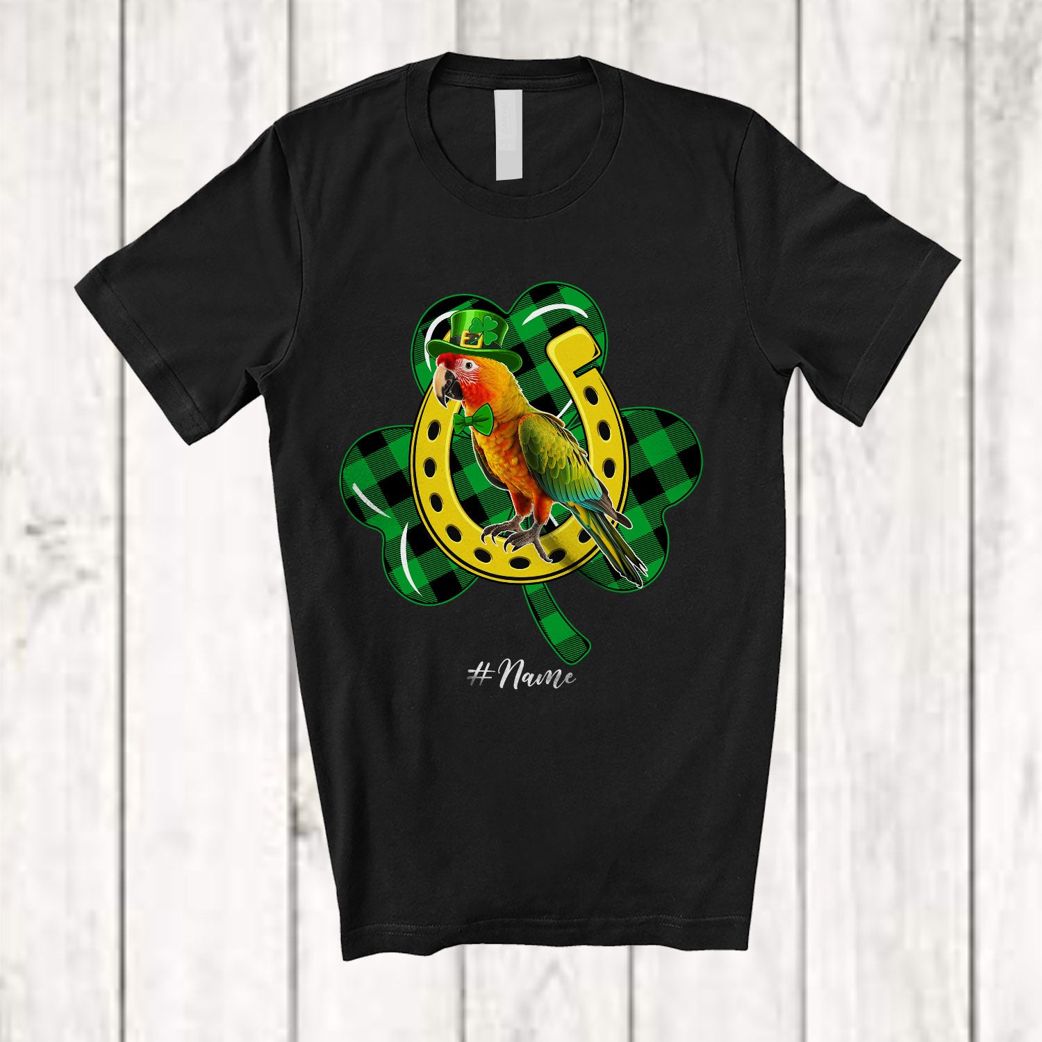 Personalized Custom Name Parrot Plaid Shamrock Horseshoe; Joyful St. Patrick's Day Bird Lover T-Shirt