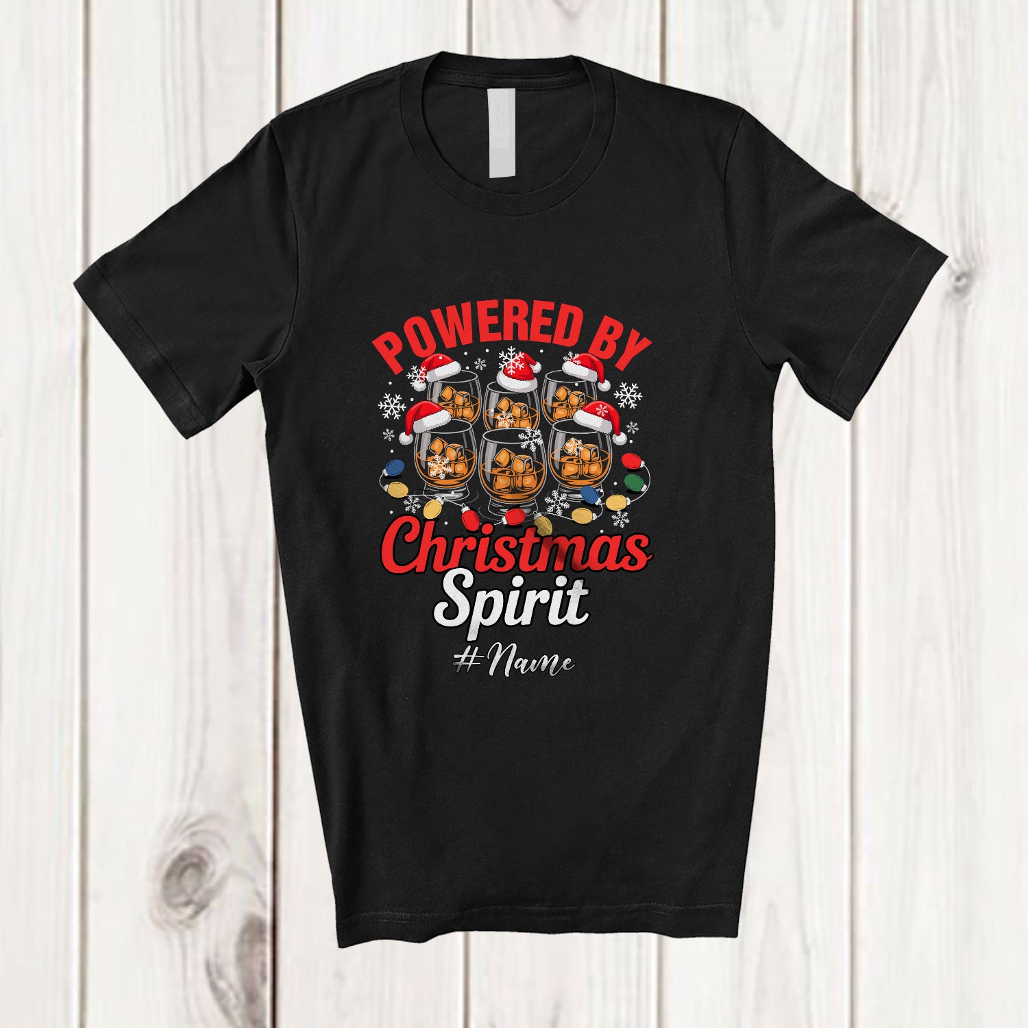 Personalized Custom Name Powered By Christmas Spirit; Sarcastic X-mas Santa Whiskey Drinking T-Shirt