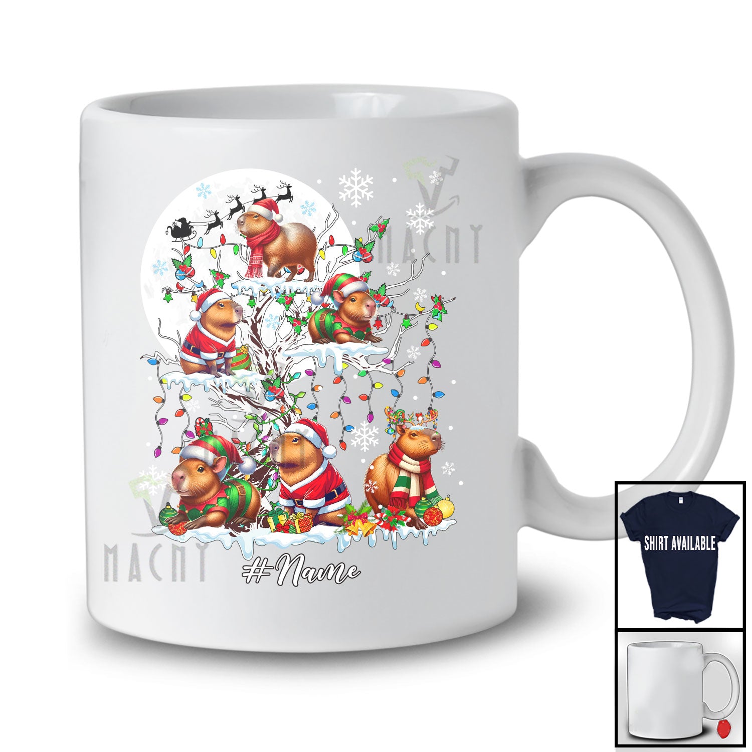 Personalized Custom Name Santa Elf Capybara On Christmas Tree; Joyful Moon Animal; Family T-Shirt