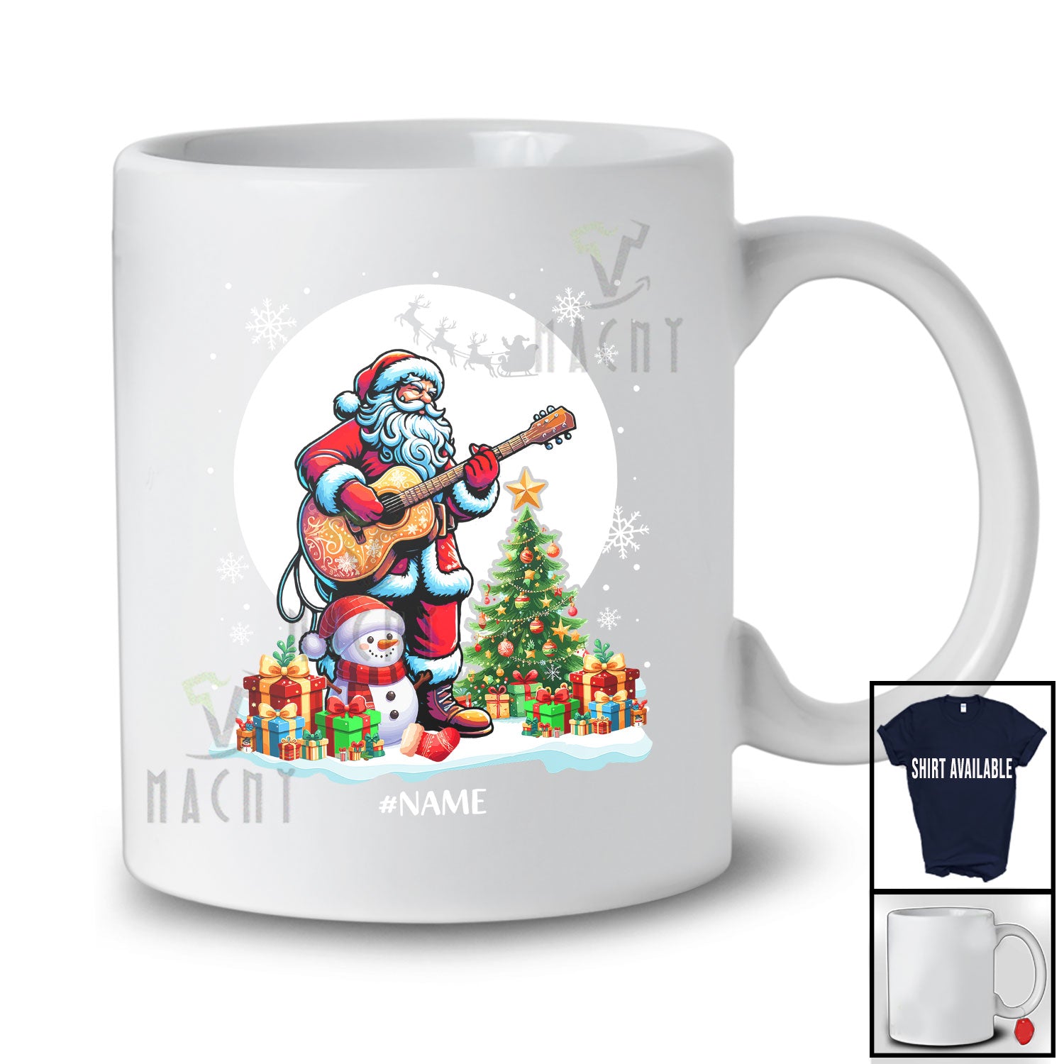 Personalized Custom Name Santa Playing Guitar; Joyful Christmas Moon Tree Snowman; Family T-Shirt