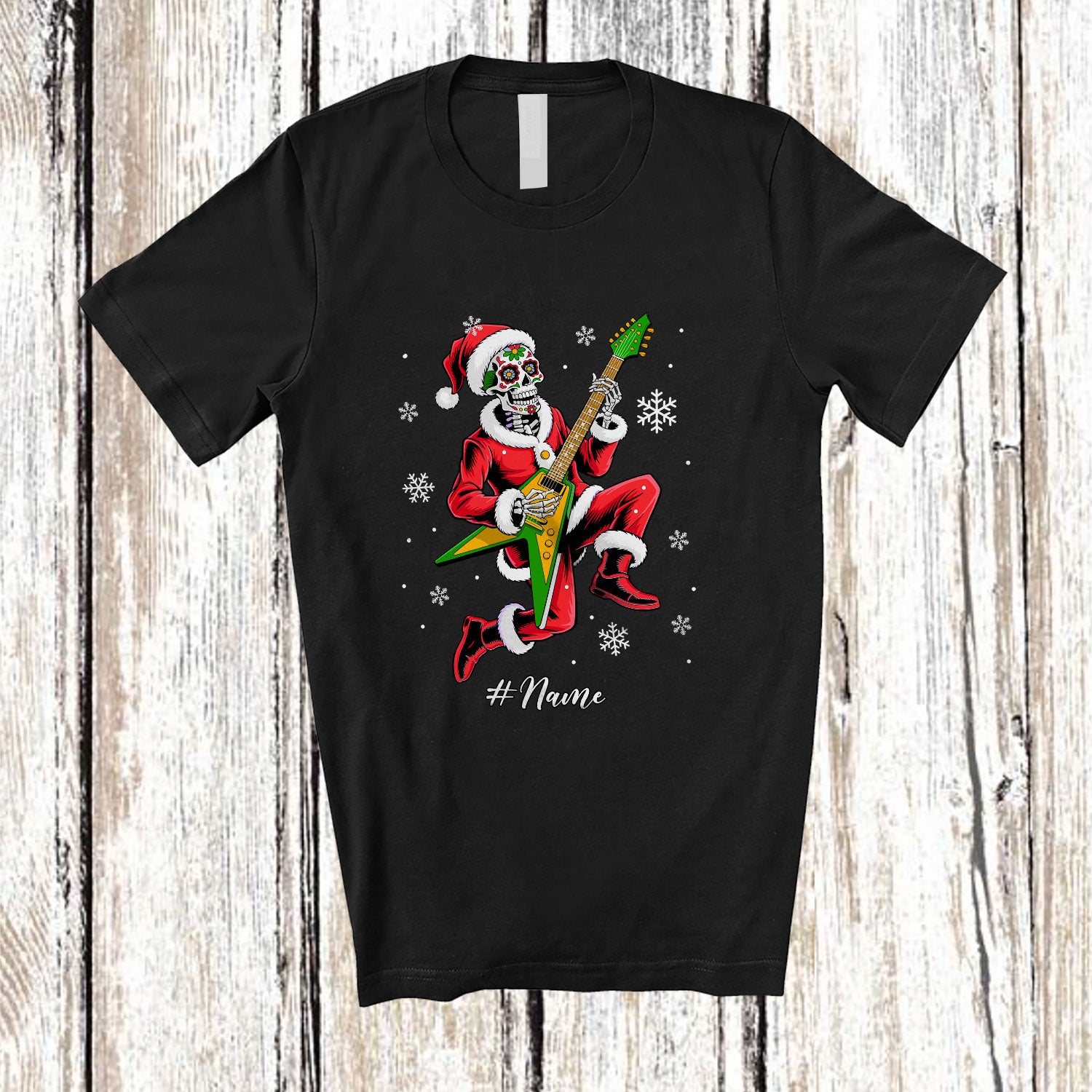 Personalized Custom Name Skeleton Playing Guitar; Joyful Dia De Los Muertos Christmas Guitarist T-Shirt