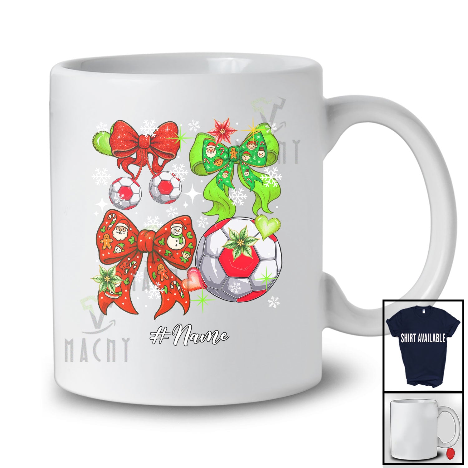 new MacnyStore - Personalized Custom Name Soccer Christmas Coquette; Lovely Bow Tie Snowing; Sport Player T-Shirt – Macnystore