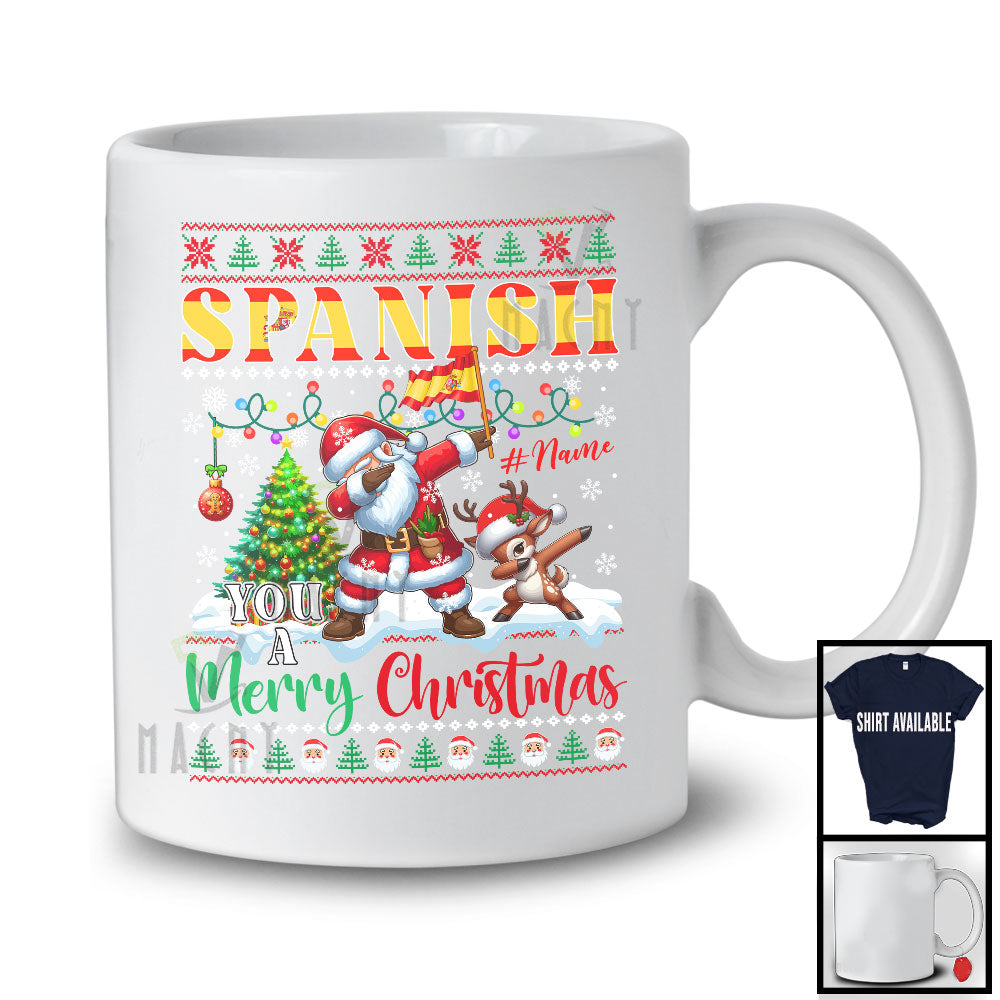 Personalized Custom Name Spanish You A Merry Christmas; Joyful Sweater Dabbing Santa; Family T-Shirt